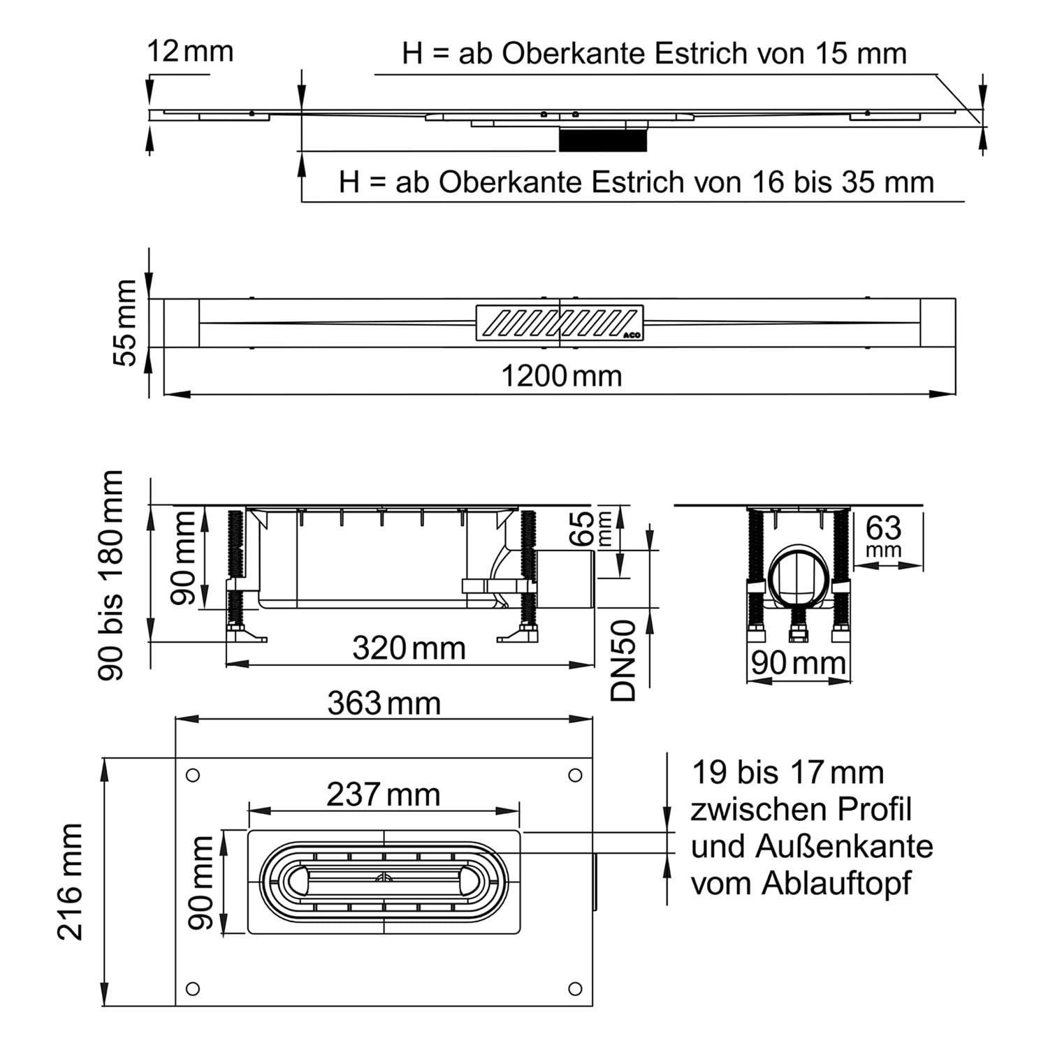 - Ablauf aus Kunststoff zu Duschrinnenprofil ACO ShowerDrain S+