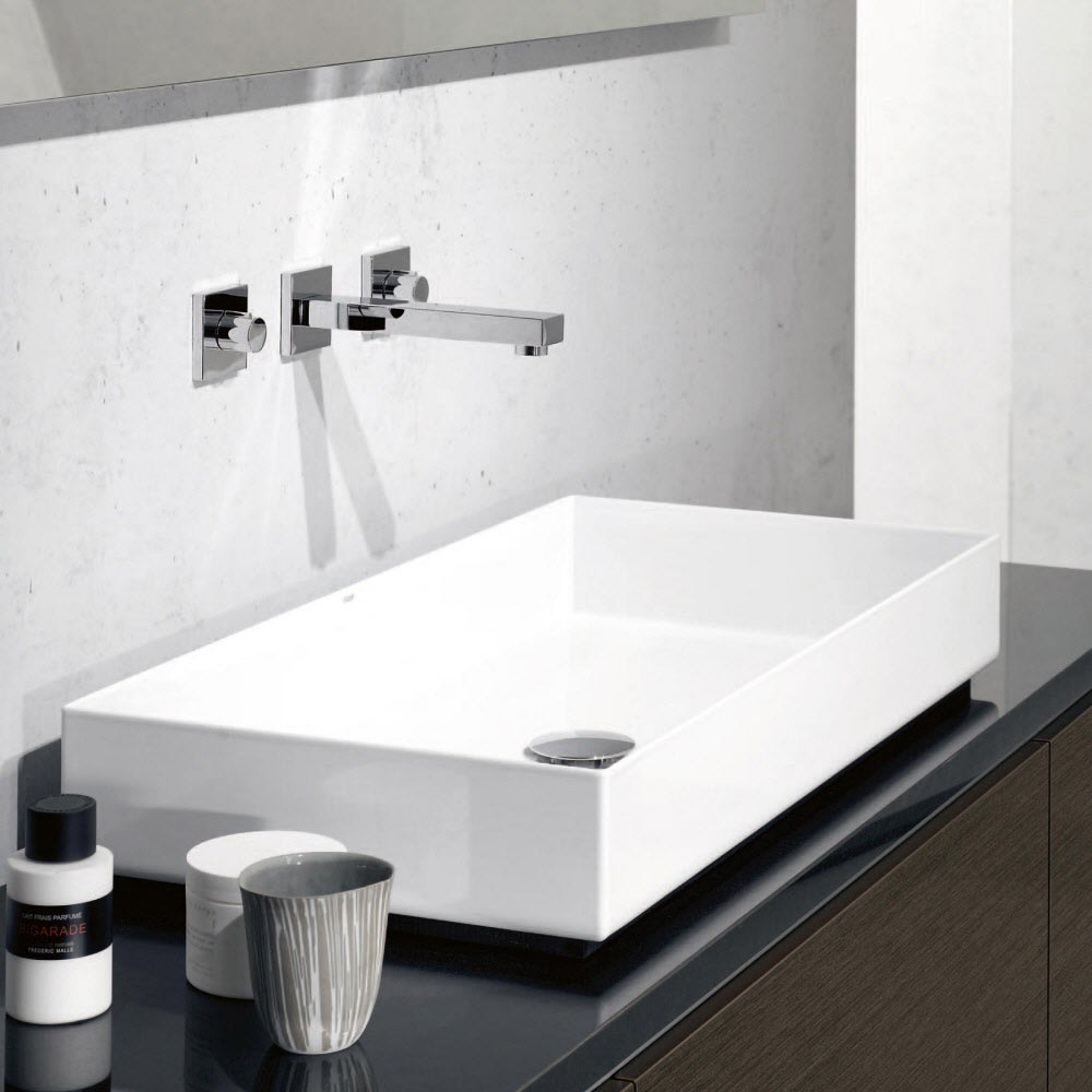 Die Serie Metaphor zeichnet sich durch die Reinheit der geometrischen Form aus. Dank ihrer reduzierten, gradlinigen Gestaltung wirken die Becken klar und prägnant. Möglich wird die puristische Formensprache erst durch das einzigartige Material glasierter Stahl, das durch Präzision, Flächigkeit und Robustheit gekennzeichnet ist.