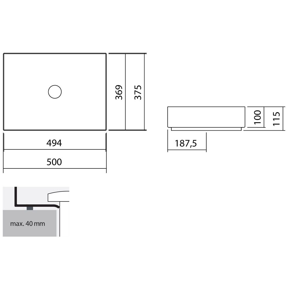 Alape Metaphor Aufsatzbecken AB.ME500, rechteckig 50 x 37,5 cm