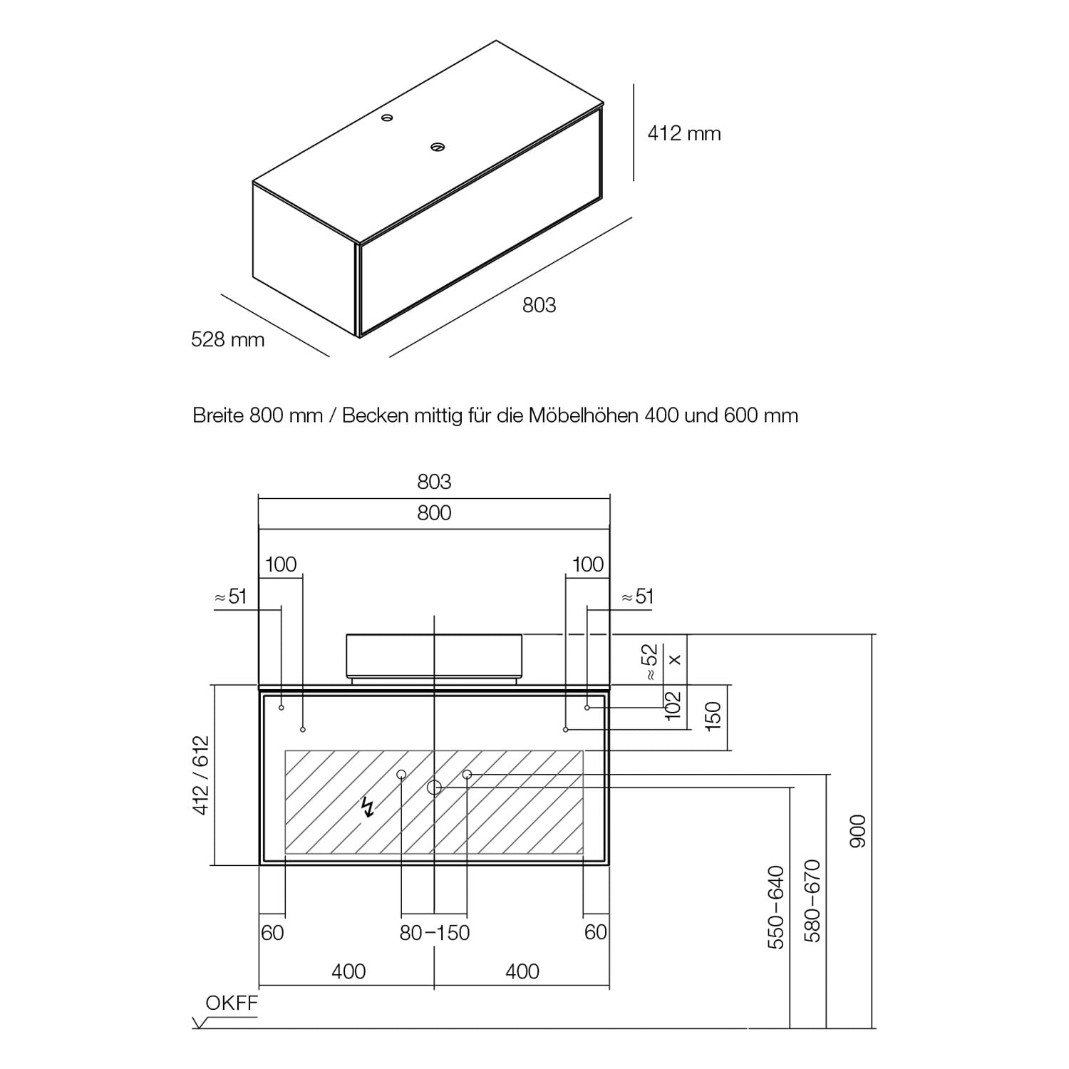 Alape Arkta Möbelmodul mit Trägerplatte 80 cm, Beckenposition mittig