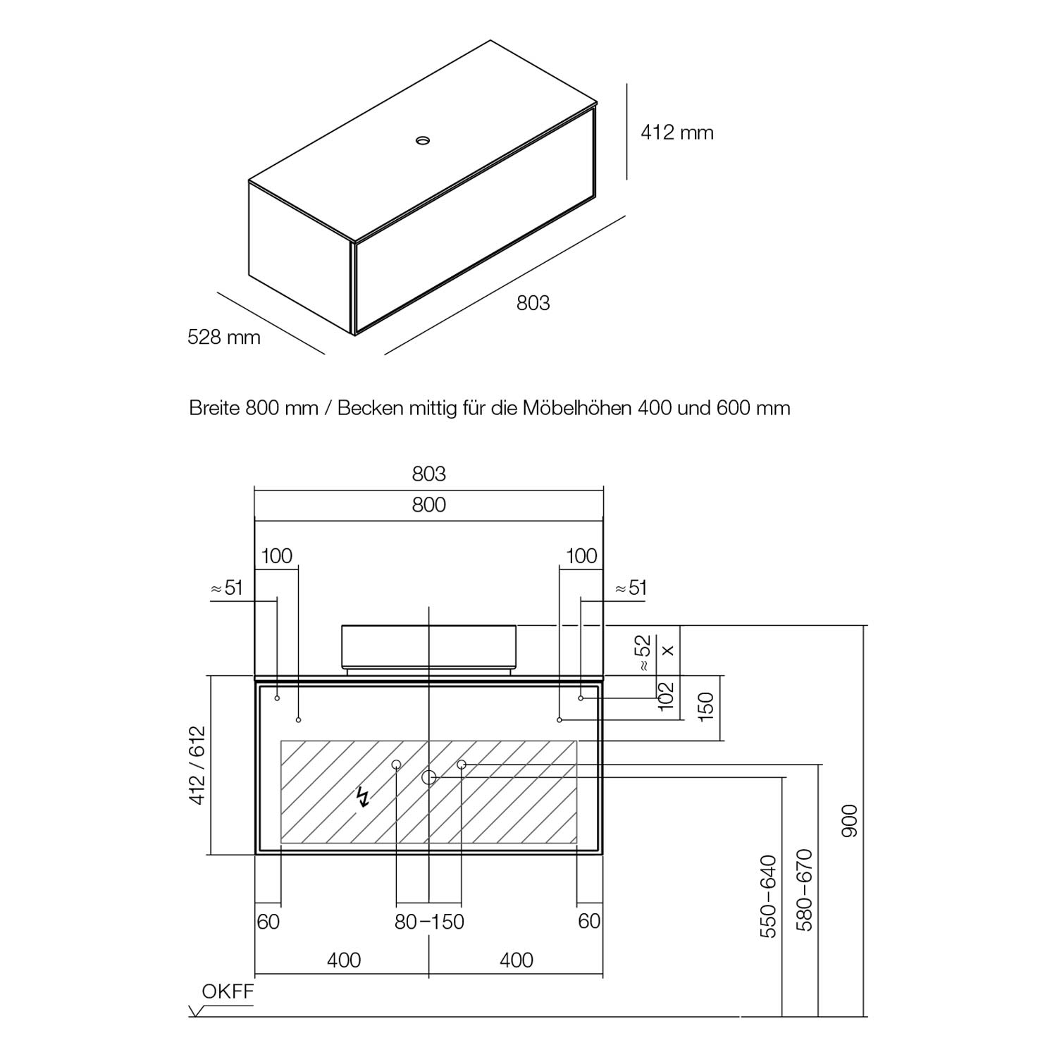 Alape Arkta Möbelmodul mit Trägerplatte 80 cm, Beckenposition mittig