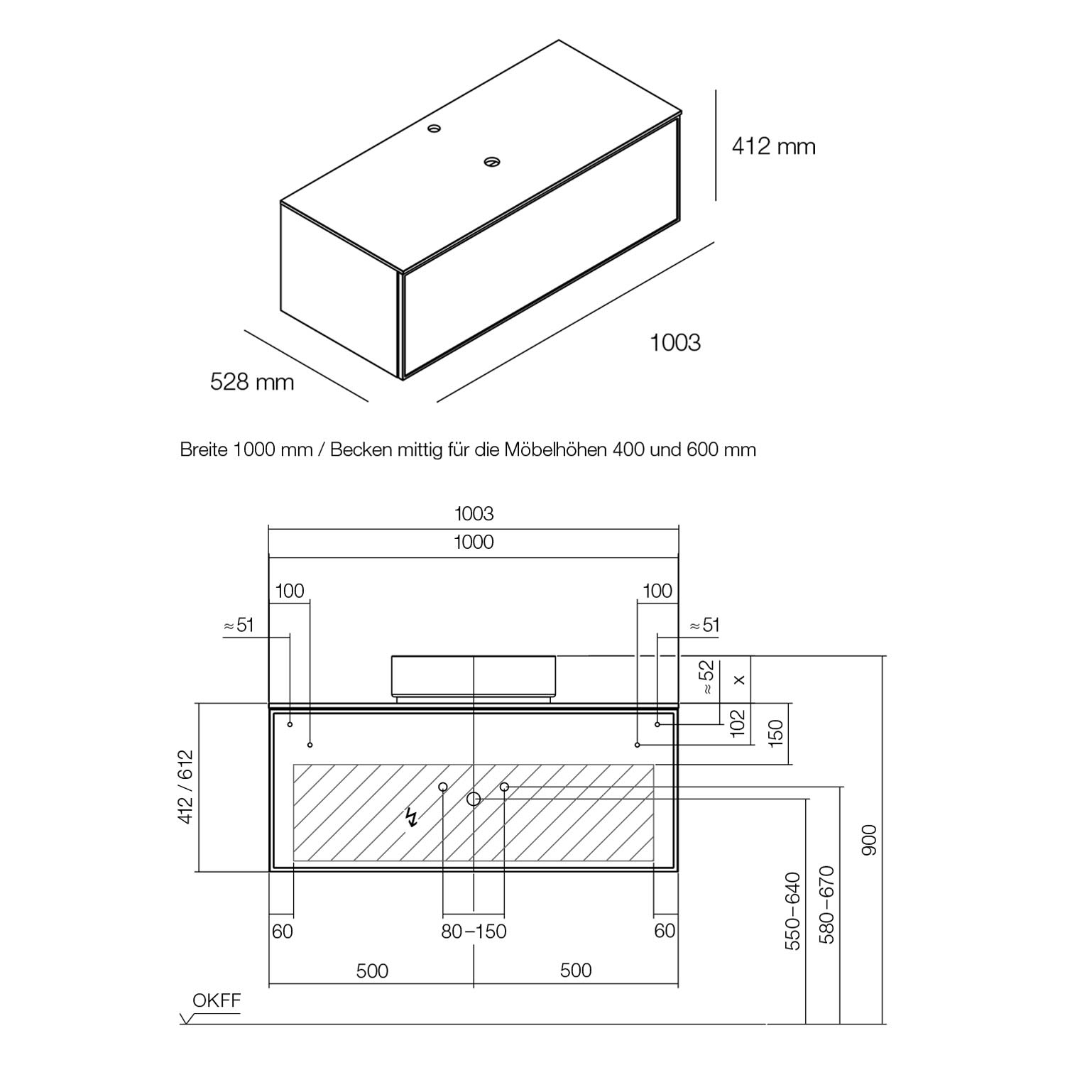 Alape Arkta Möbelmodul mit Trägerplatte 100 cm, Beckenposition mittig