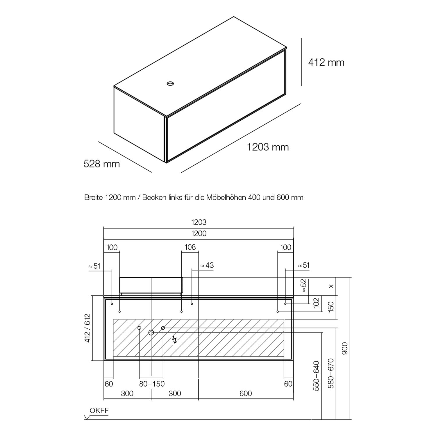 Alape Arkta Möbelmodul mit Trägerplatte 120 cm, Beckenposition links