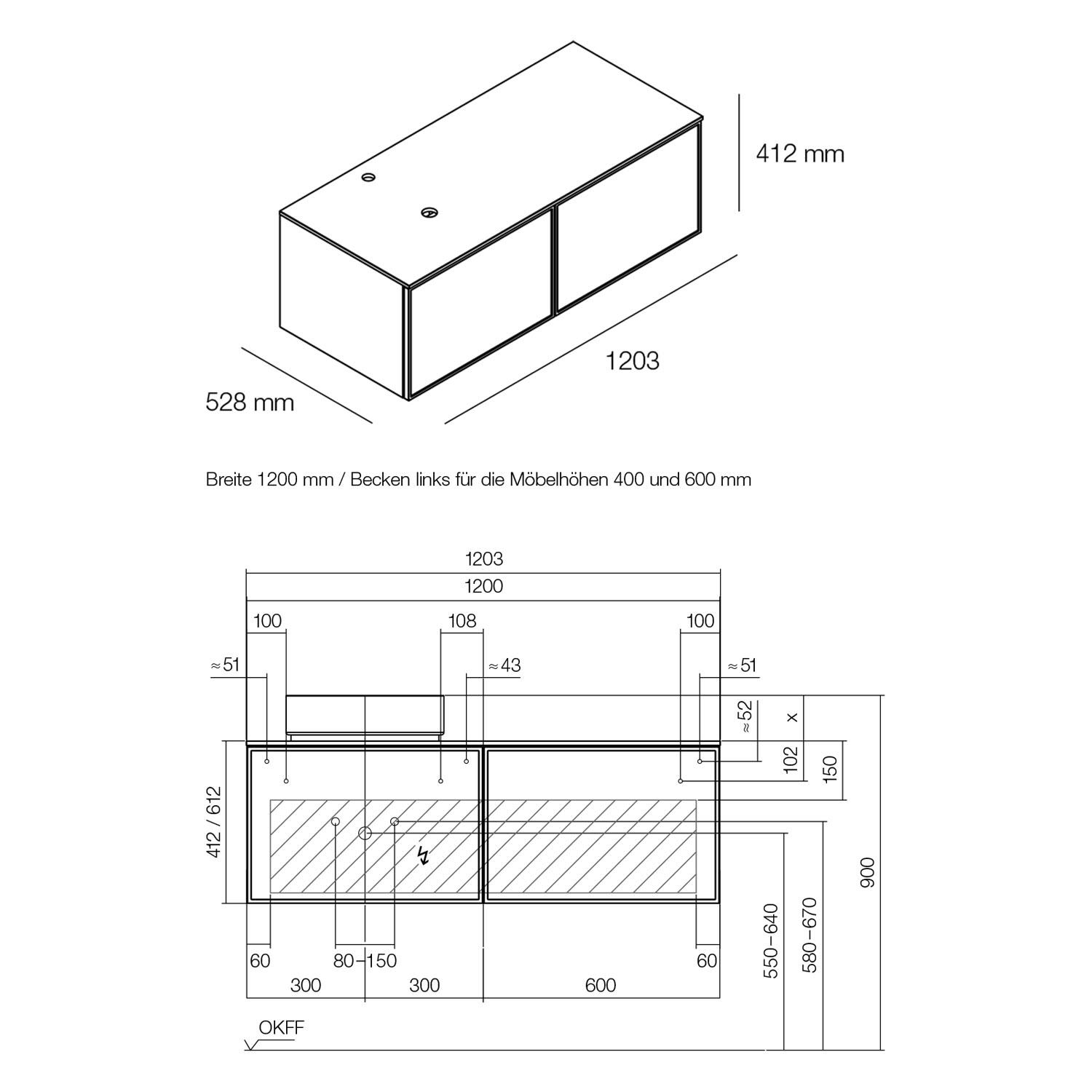 Alape Arkta Möbelmodul mit Trägerplatte 120 cm, Beckenposition links
