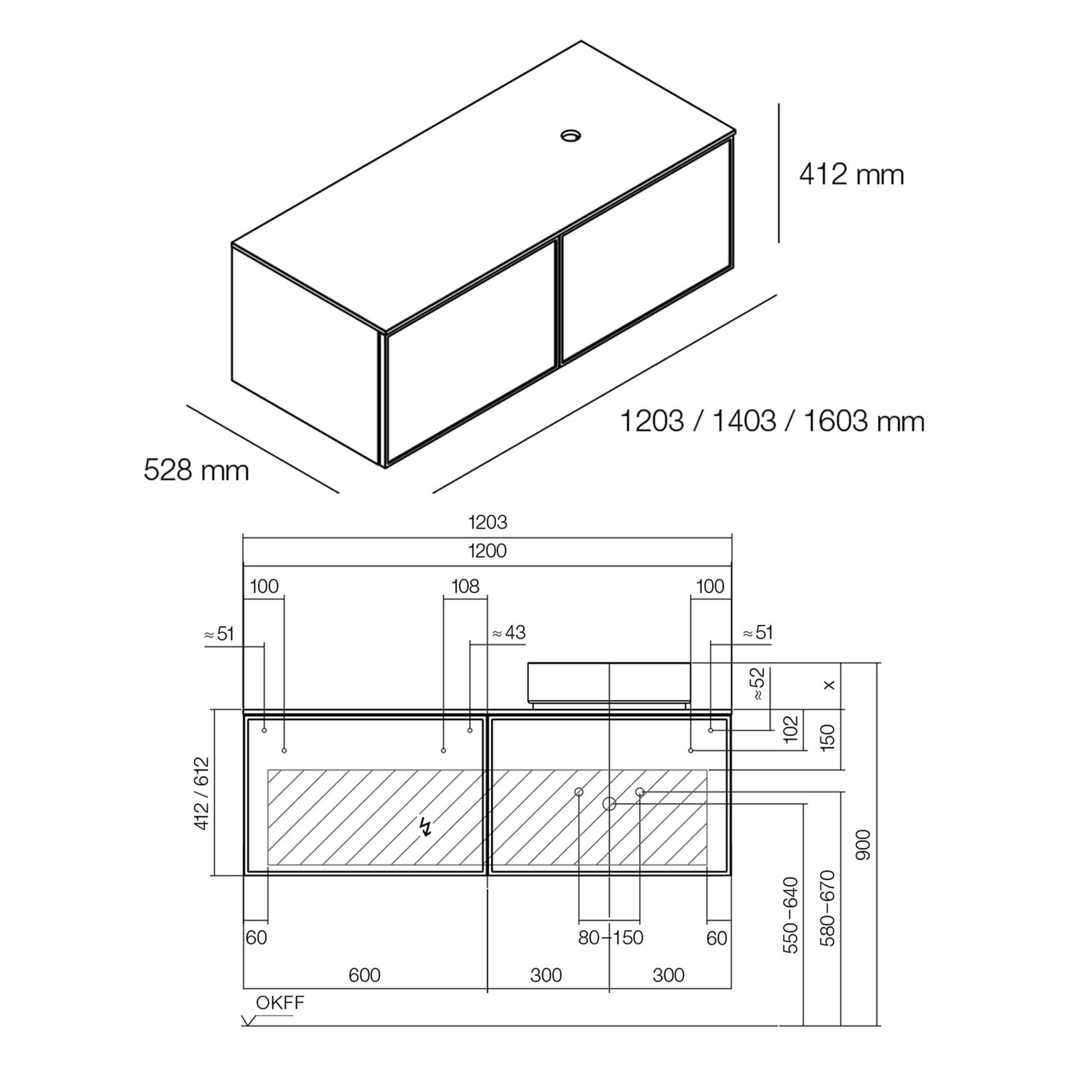 Alape Arkta Möbelmodul mit Trägerplatte 120 cm, Beckenposition rechts