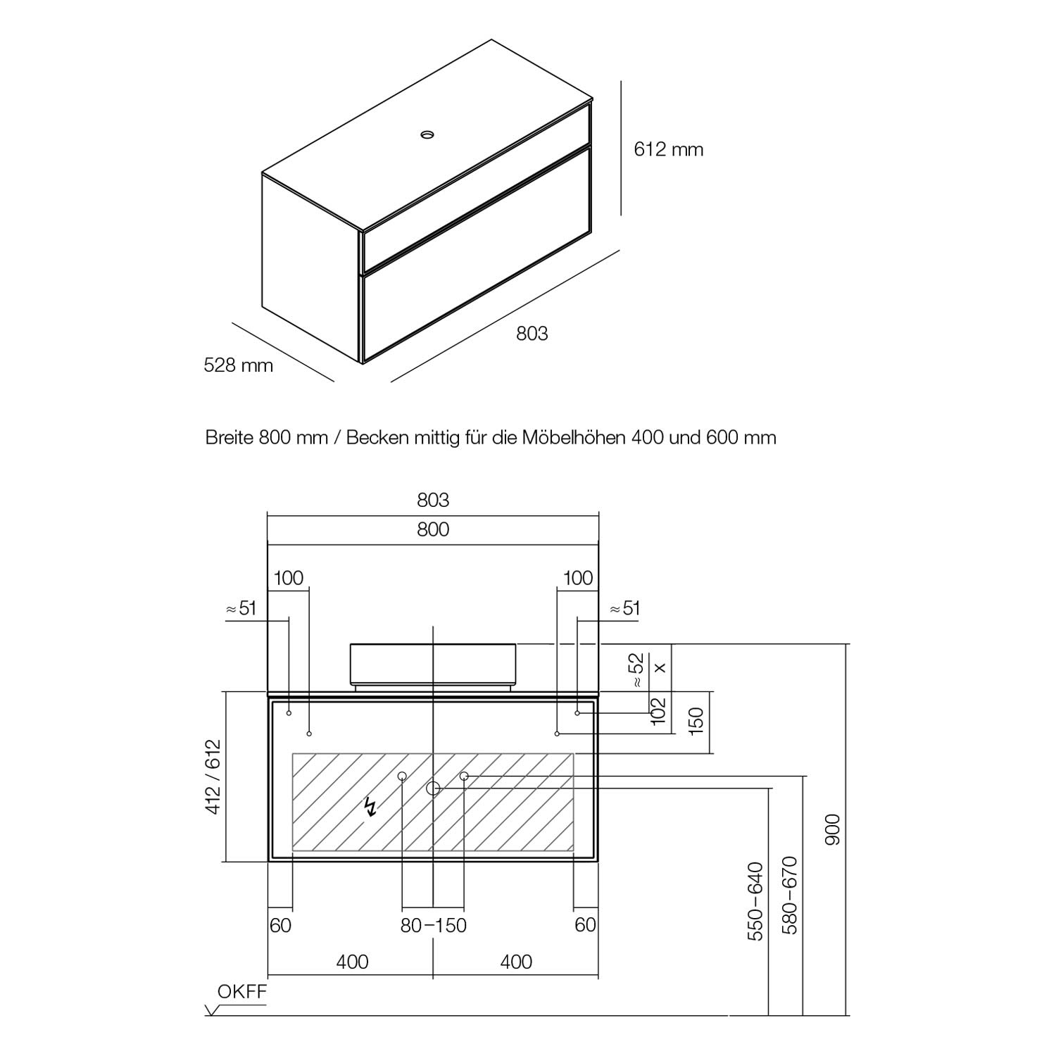Alape Arkta Möbelmodul mit Trägerplatte 80 cm, Beckenposition mittig
