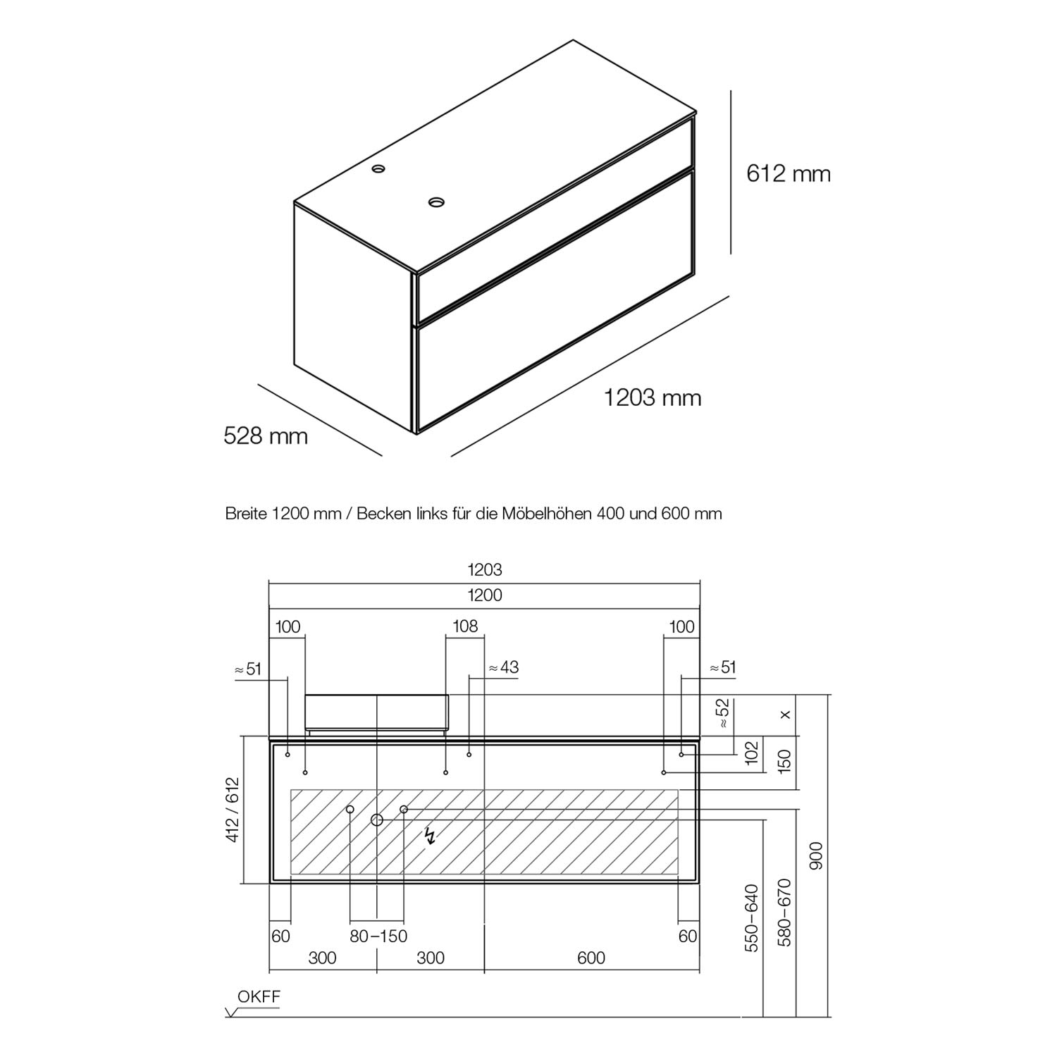 Alape Arkta Möbelmodul mit Trägerplatte 120 cm, Beckenposition links