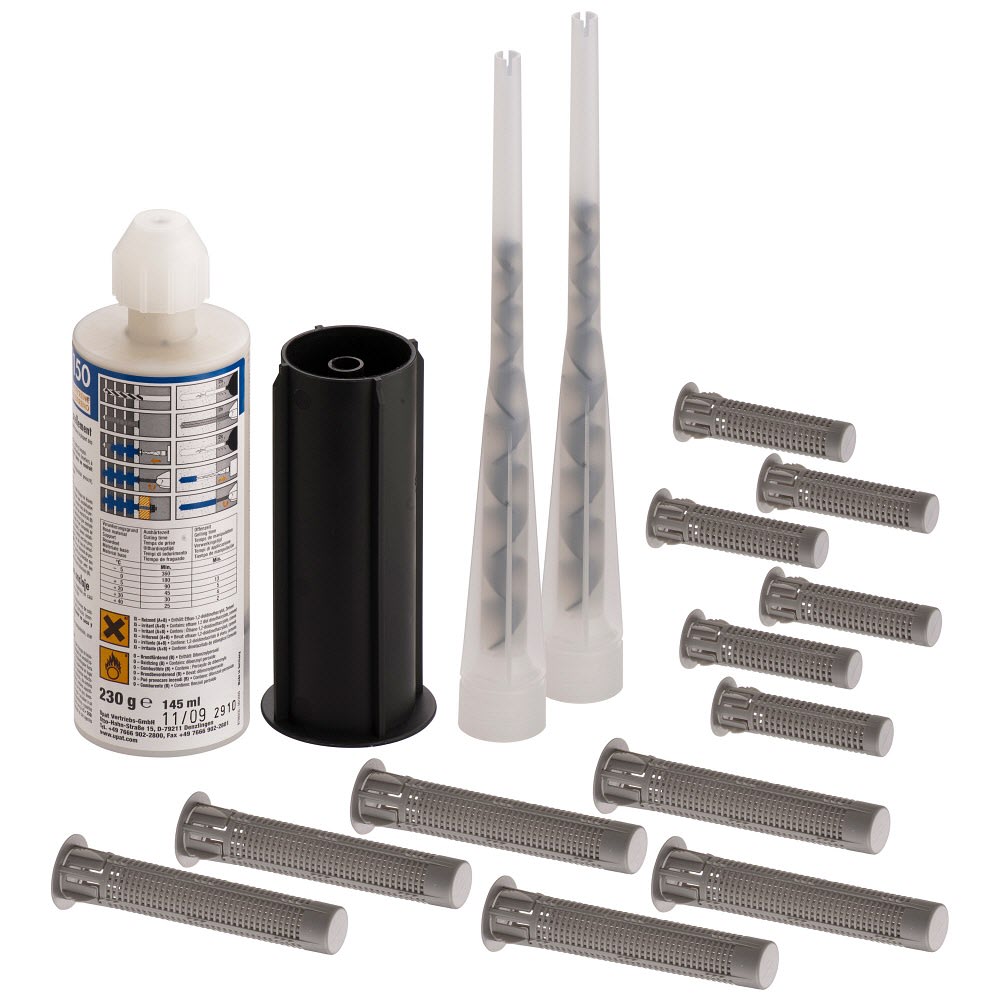 - inkl. 1 Kartusche (220 g bzw. 145 cm³) chemischen Verbundmörtel