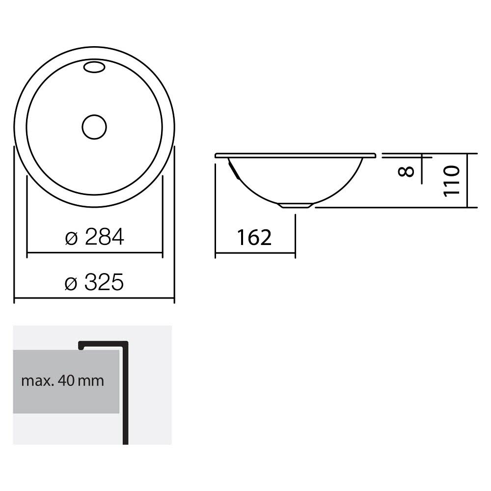 Alape Einbaubecken EB.K325, kreisförmig mit 32,5 cm Ø ohne Überlauf