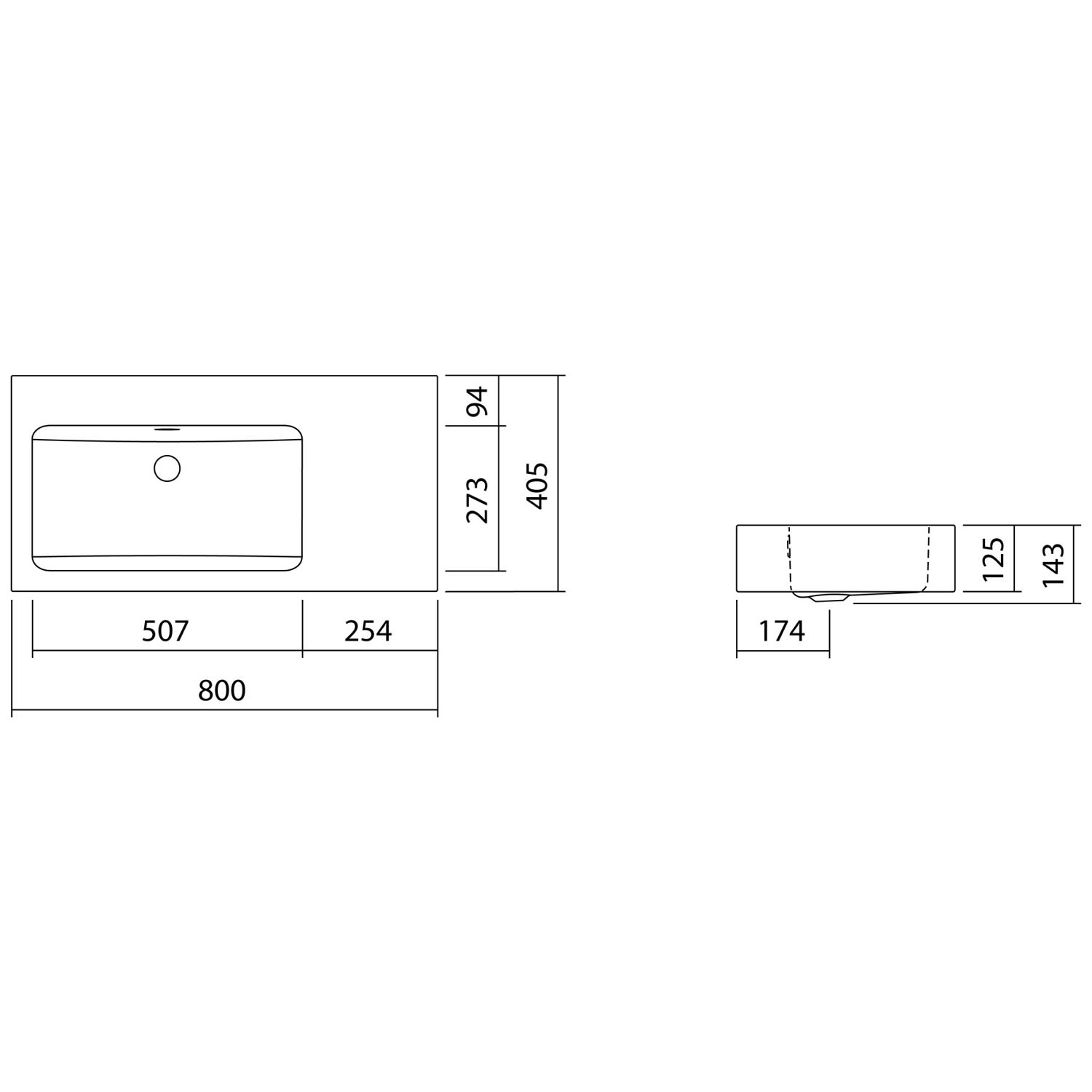 Alape Waschtisch WT.PR800.L, rechteckig 80 x 40,5 cm