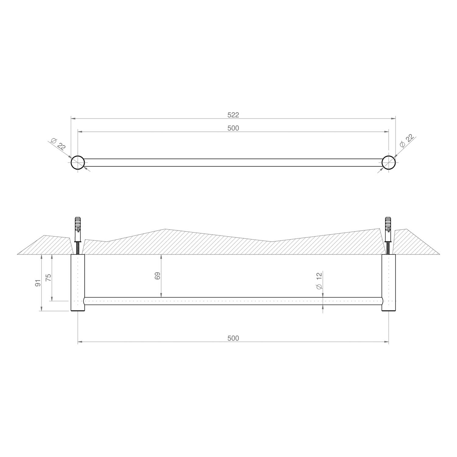 - Bohrlochabstand 50 cm