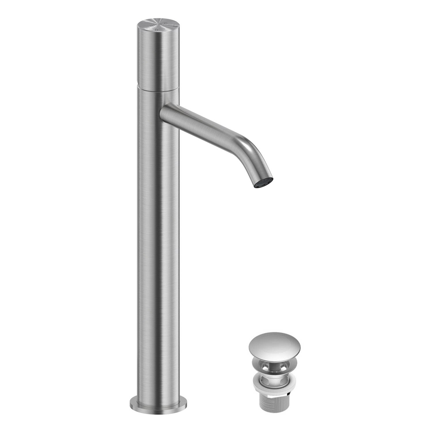 ALLUVION Juno Edelstahl Waschtisch-Einhebelmischer XXL mit push-open Ablaufventil , wassersparend