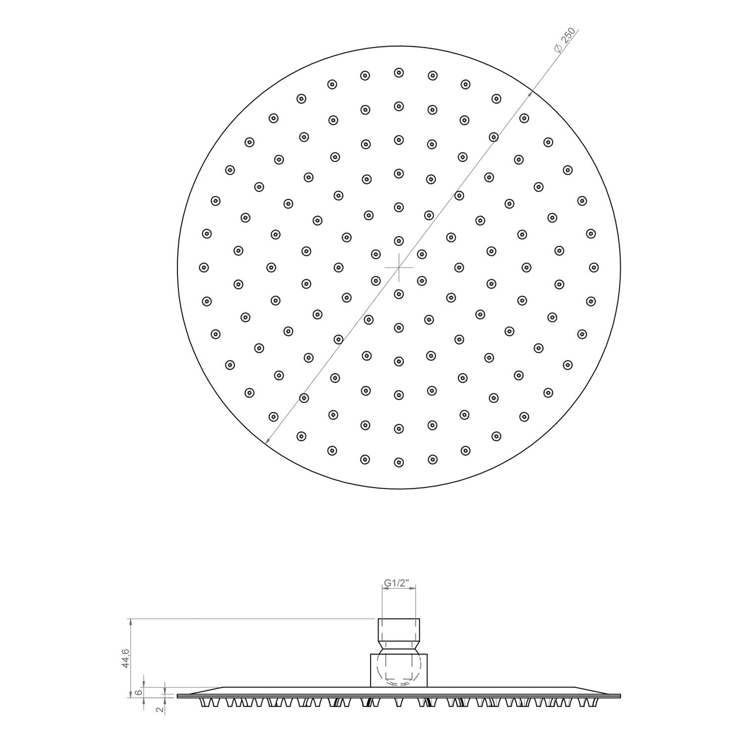 - Die großzügig dimensionierte Kopfbrause mit 25 cm Durchmesser ermöglicht ein luxuriöses und umfassendes Duscherlebnis.