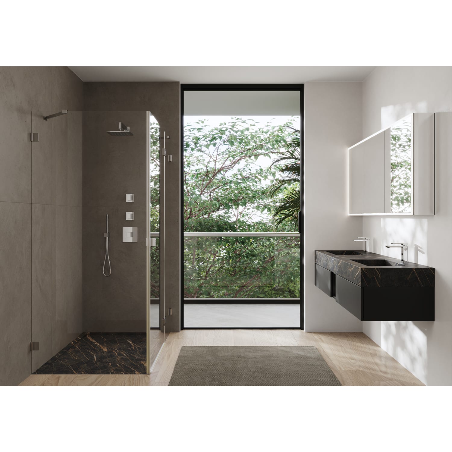 - Wandanschluss G 1/2 mit integriertem Brausehalter und flexibler Brauseschlauch 1,5 m.