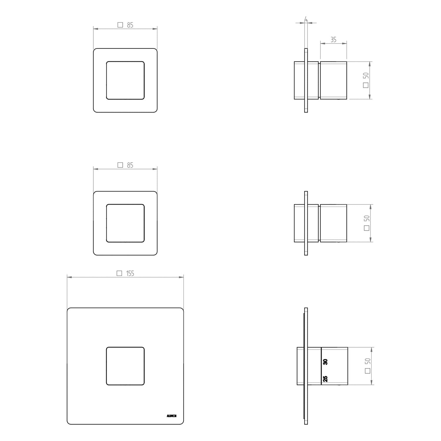 ALLUVION Mercur Unterputz Brausethermostat mit Absperrventilen für 2 Verbraucher, ohne Grundkörper