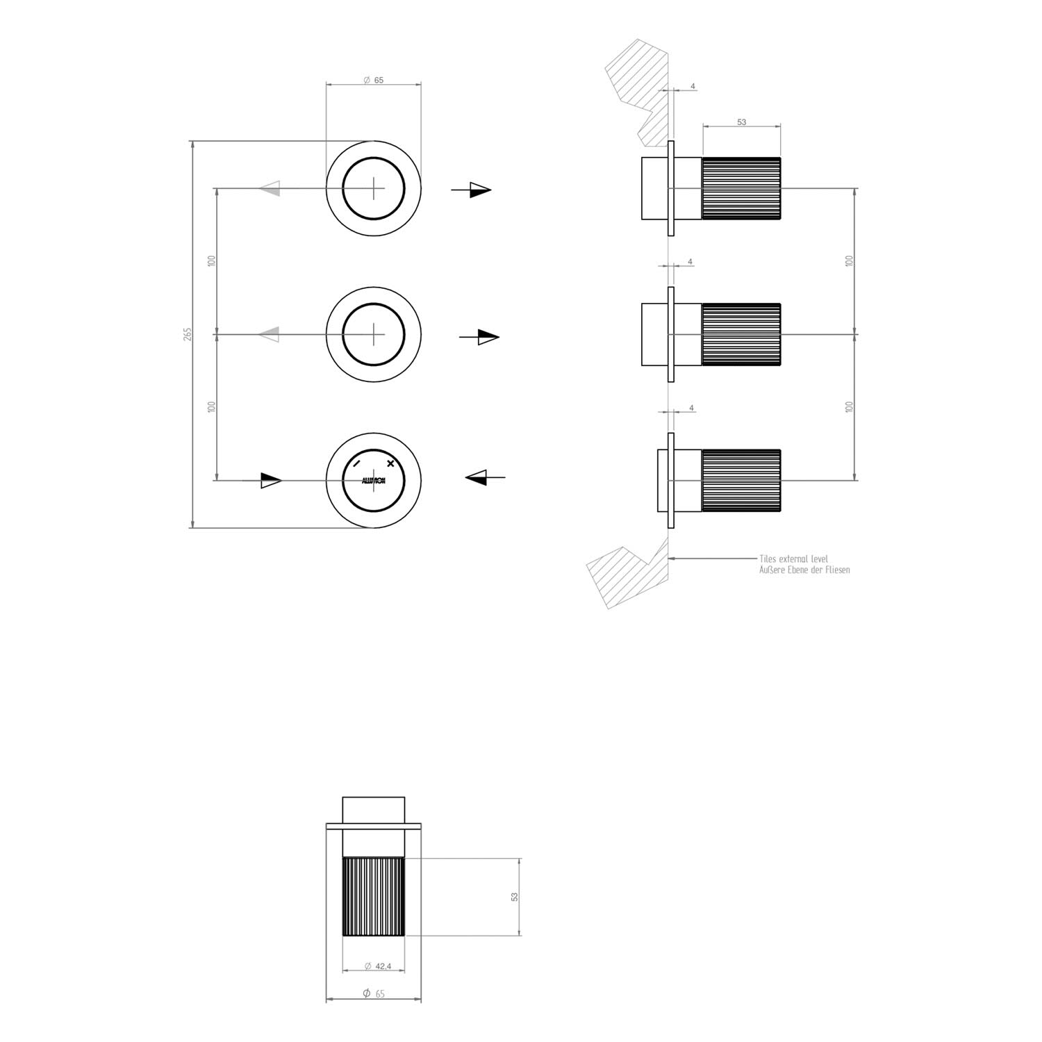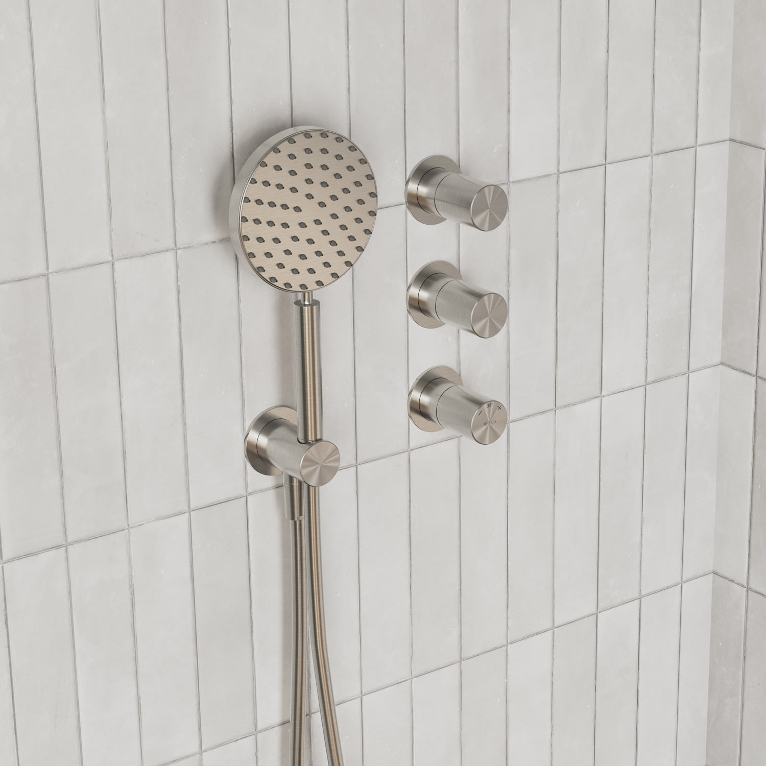 ALLUVION Neptun Edelstahl Unterputz Brausethermostat mit Absperrventilen für 2 Verbraucher, ohne Grundkörper
