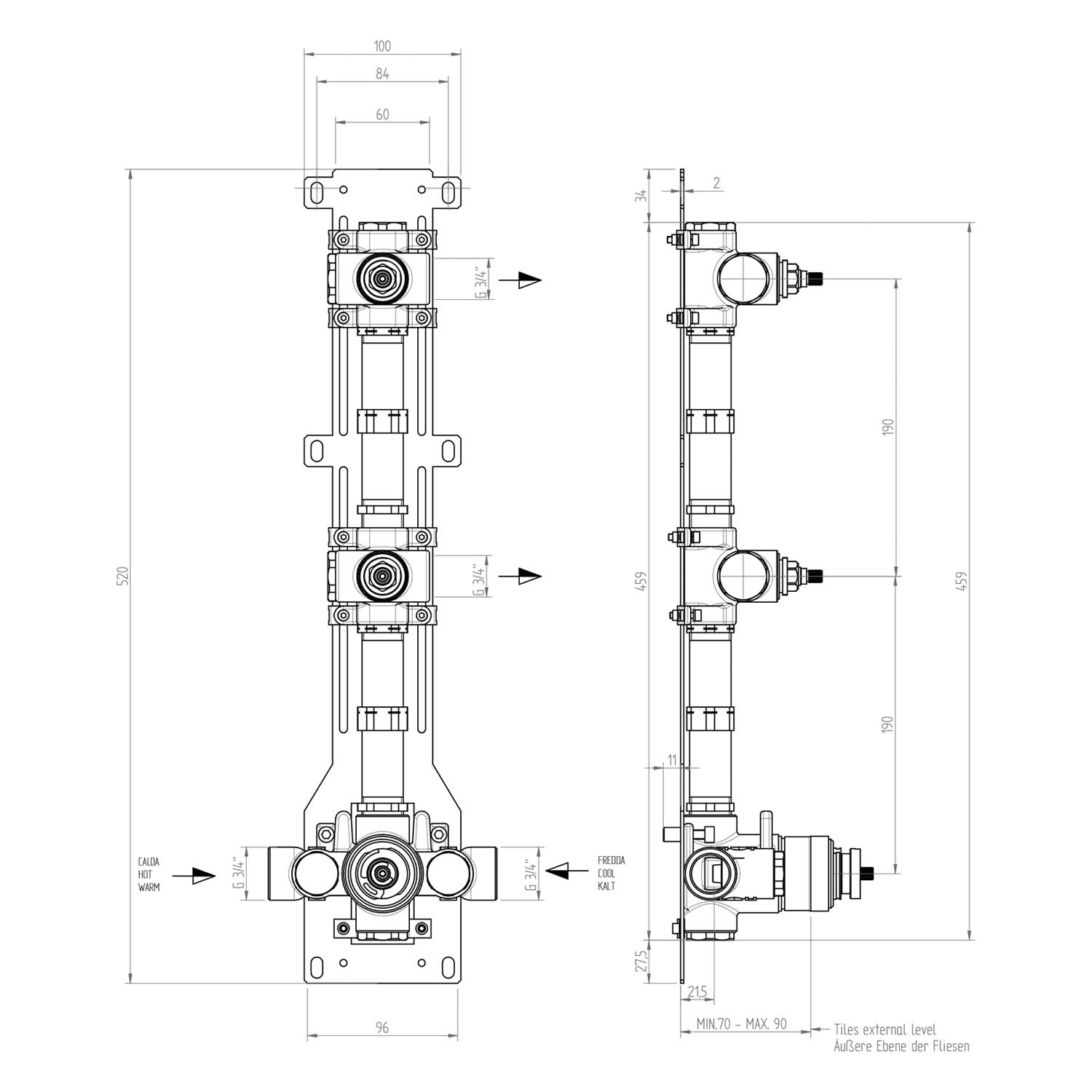 - 4 Abgänge G3/4 für Unterputzanschlüsse