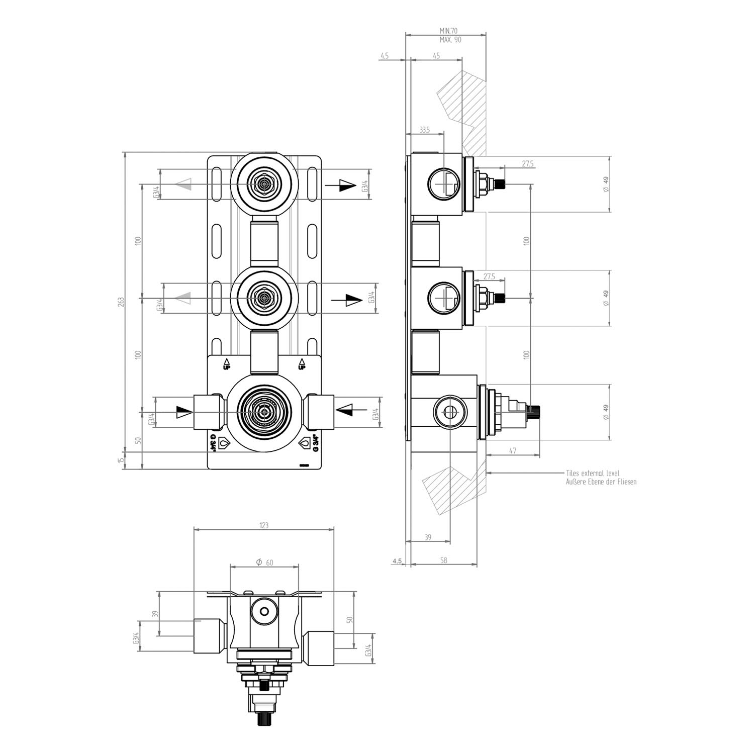 - Einbautiefe 70 - 90mm