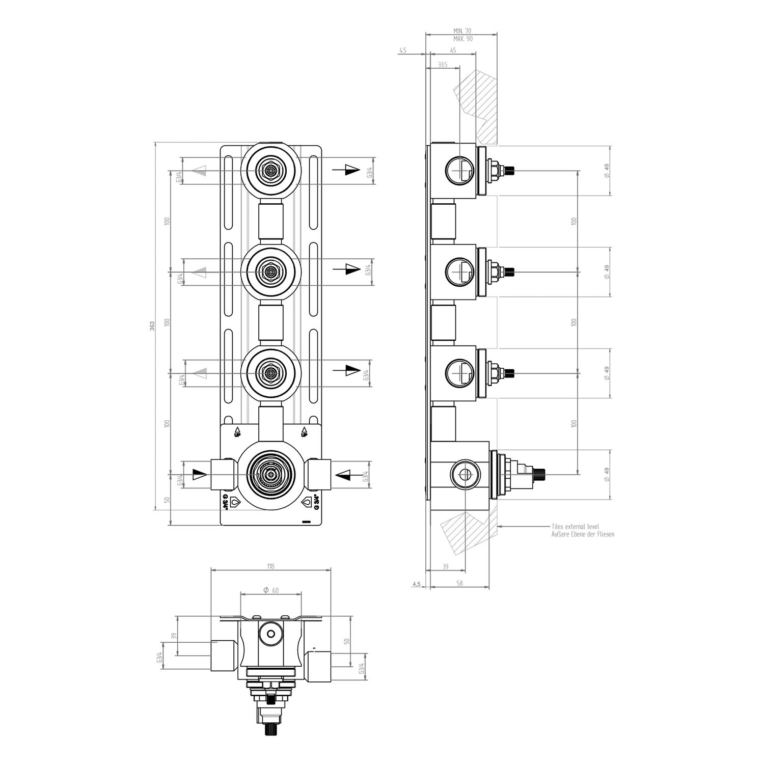 - Einbautiefe 70 - 90mm