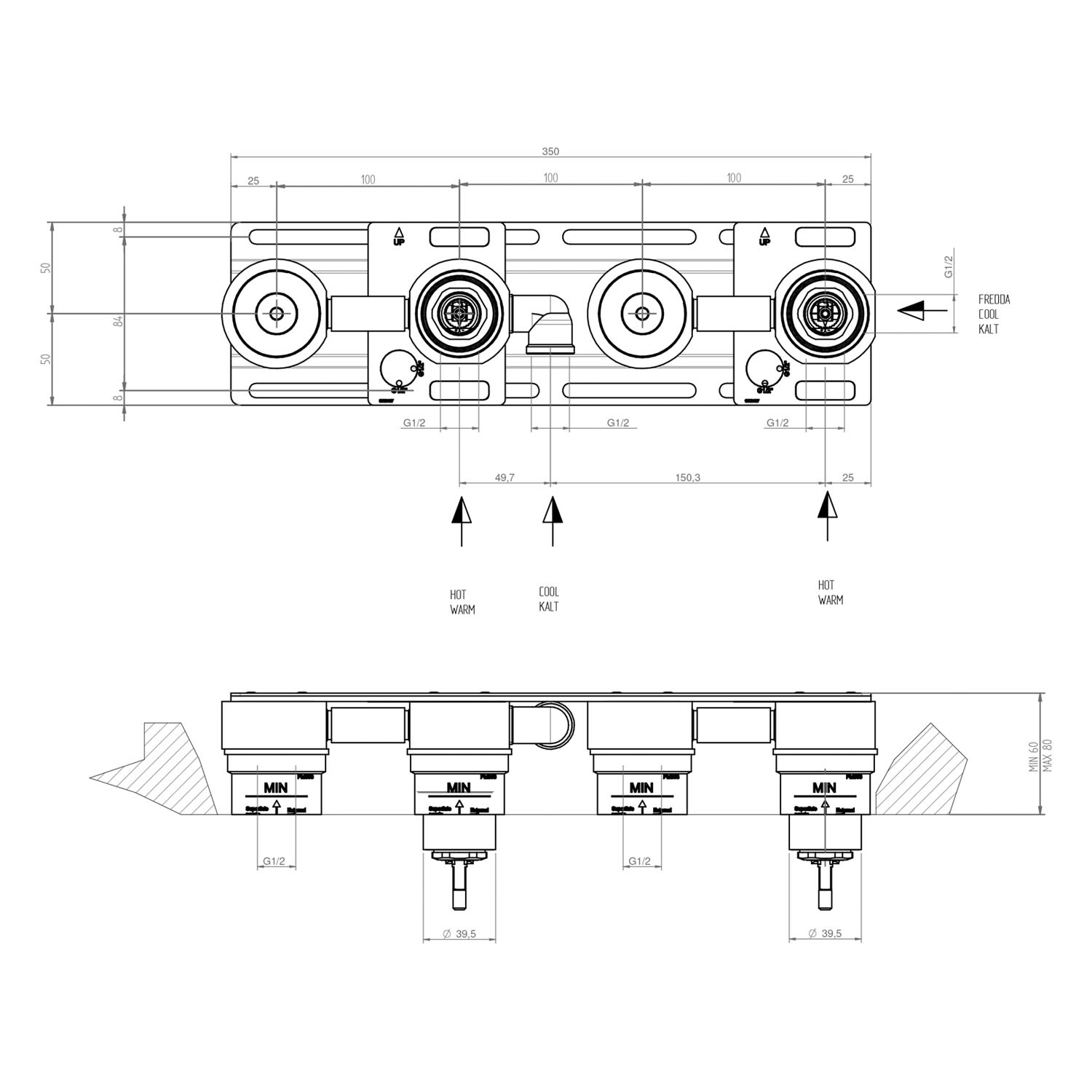 - Einbautiefe 60 - 80mm