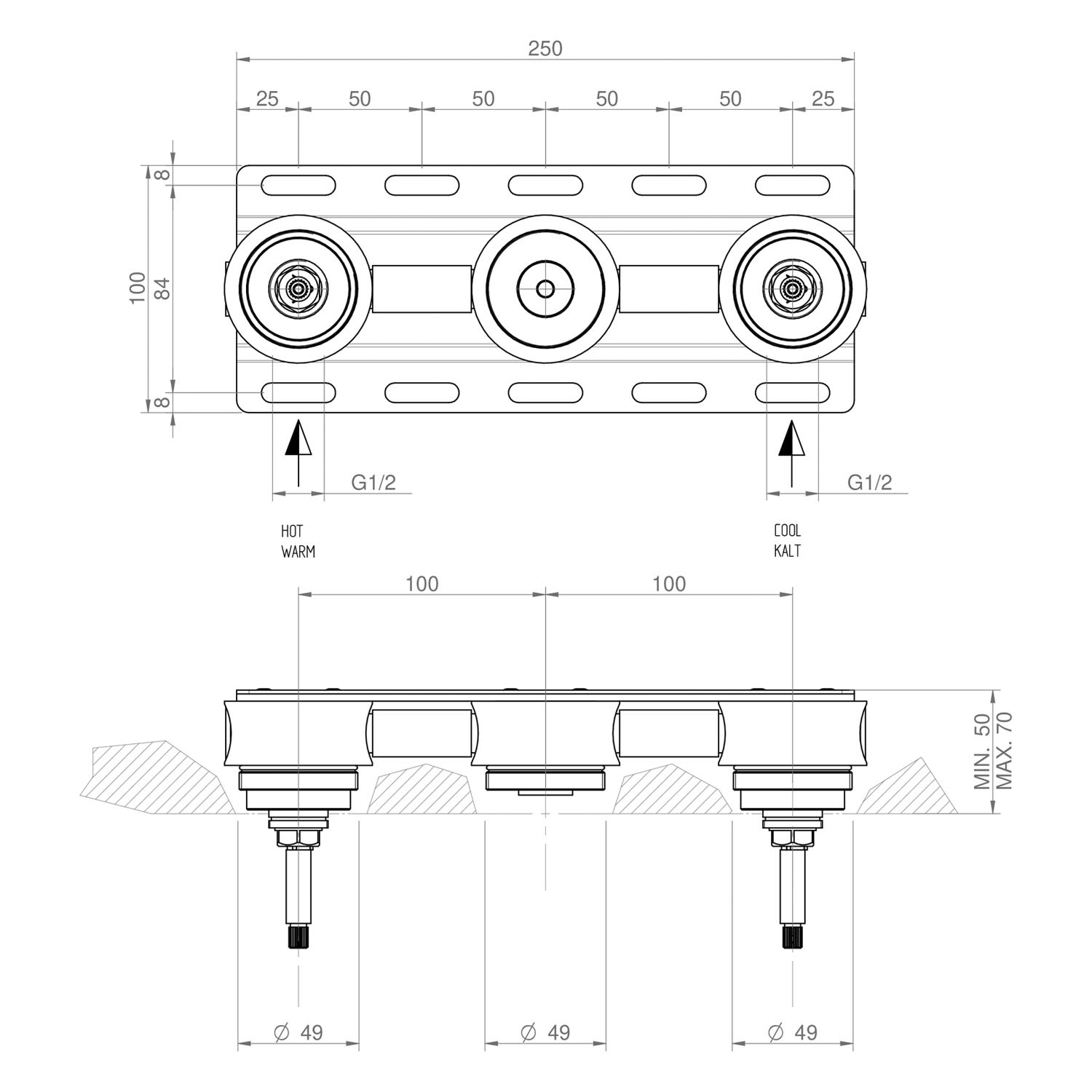 - Einbautiefe 50 - 70mm
