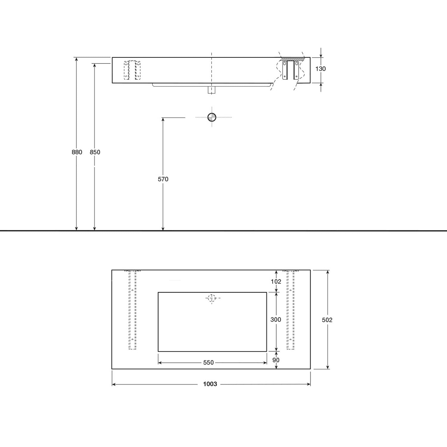 - Optimiertes Wasserabflussdesign: der Waschtisch ist leicht abgesenkt, um ein verbessertes Abfließen des Wassers durch den durchgängigen, verdeckten Ablauf zu gewährleisten