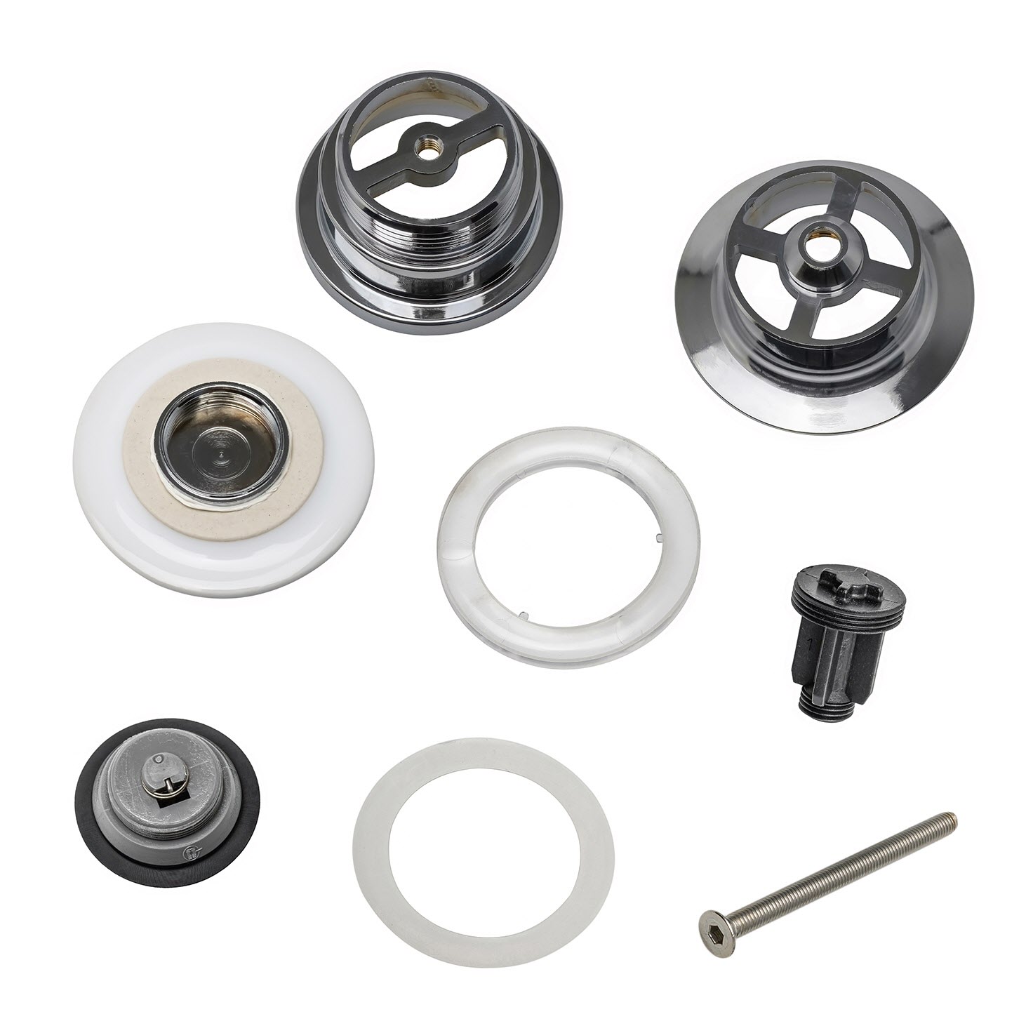 - hergestellt aus verchromten Metall mit Kappe aus Sanitärkeramik