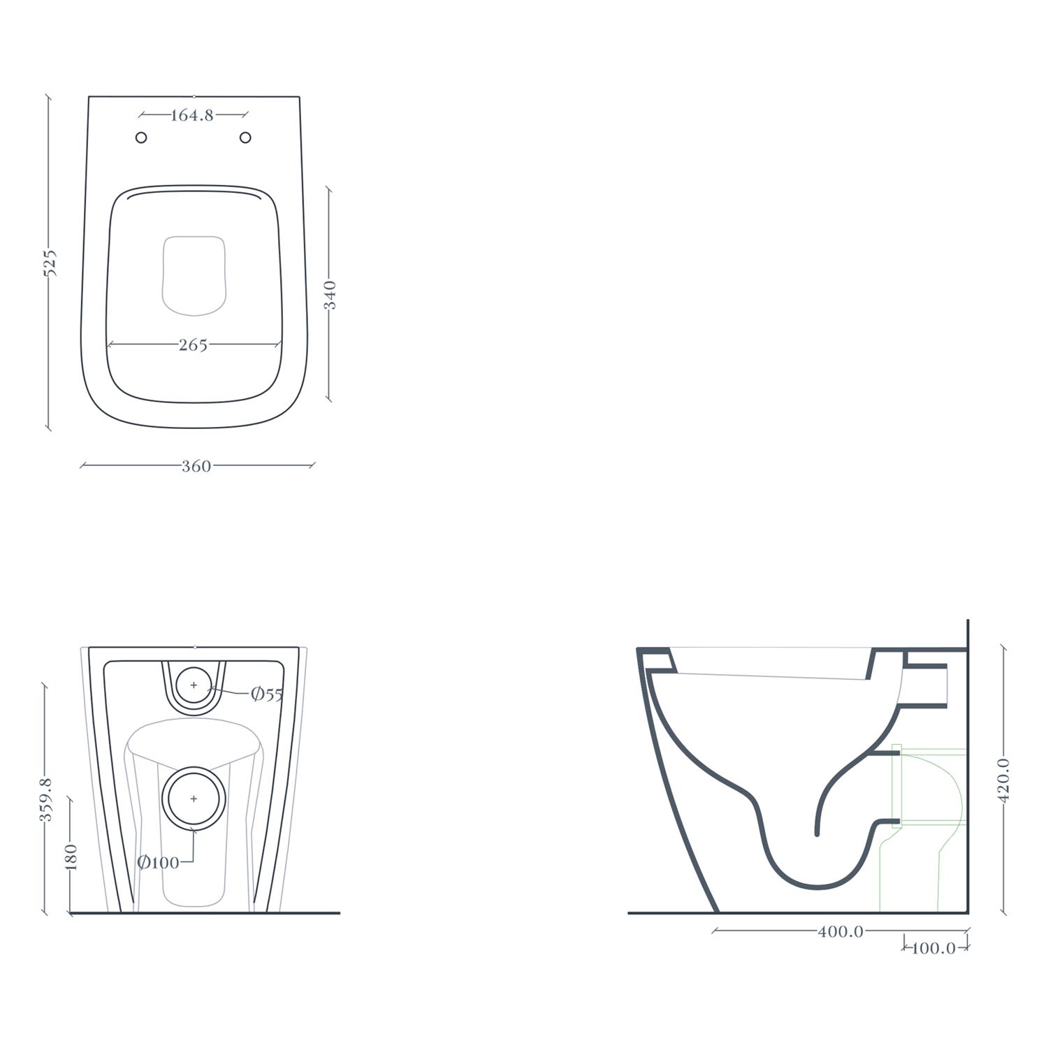 ALLUVION Mars wandbündiges Stand-WC Tiefspüler ohne Spülrand inkl. WC-Sitz slim