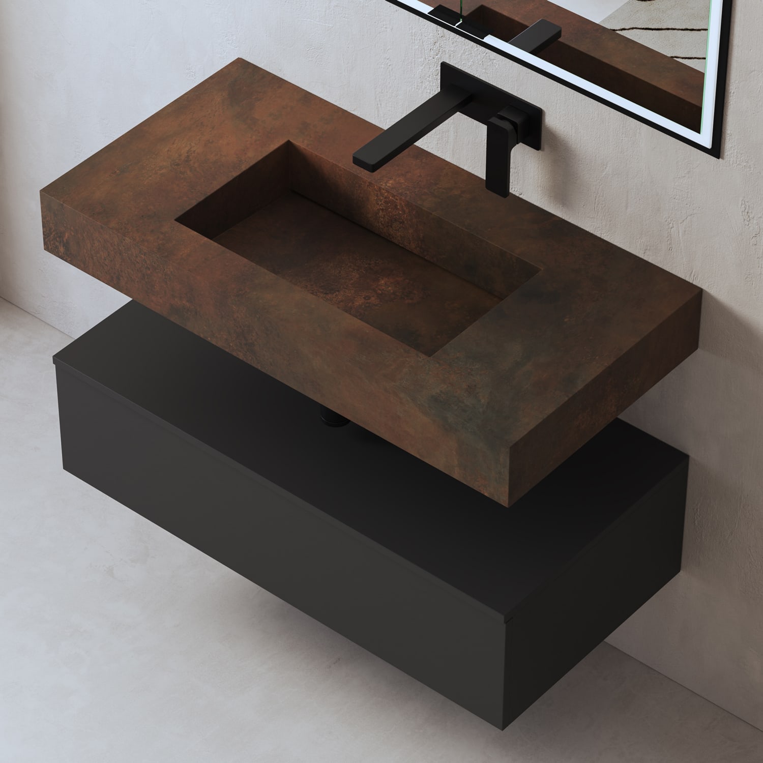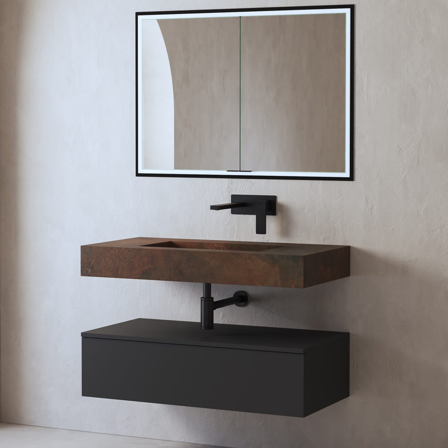 - Gestaltungsfreiheit: ohne Beckenausschnitt passend zu individuell ausgewähltem Waschtisch.