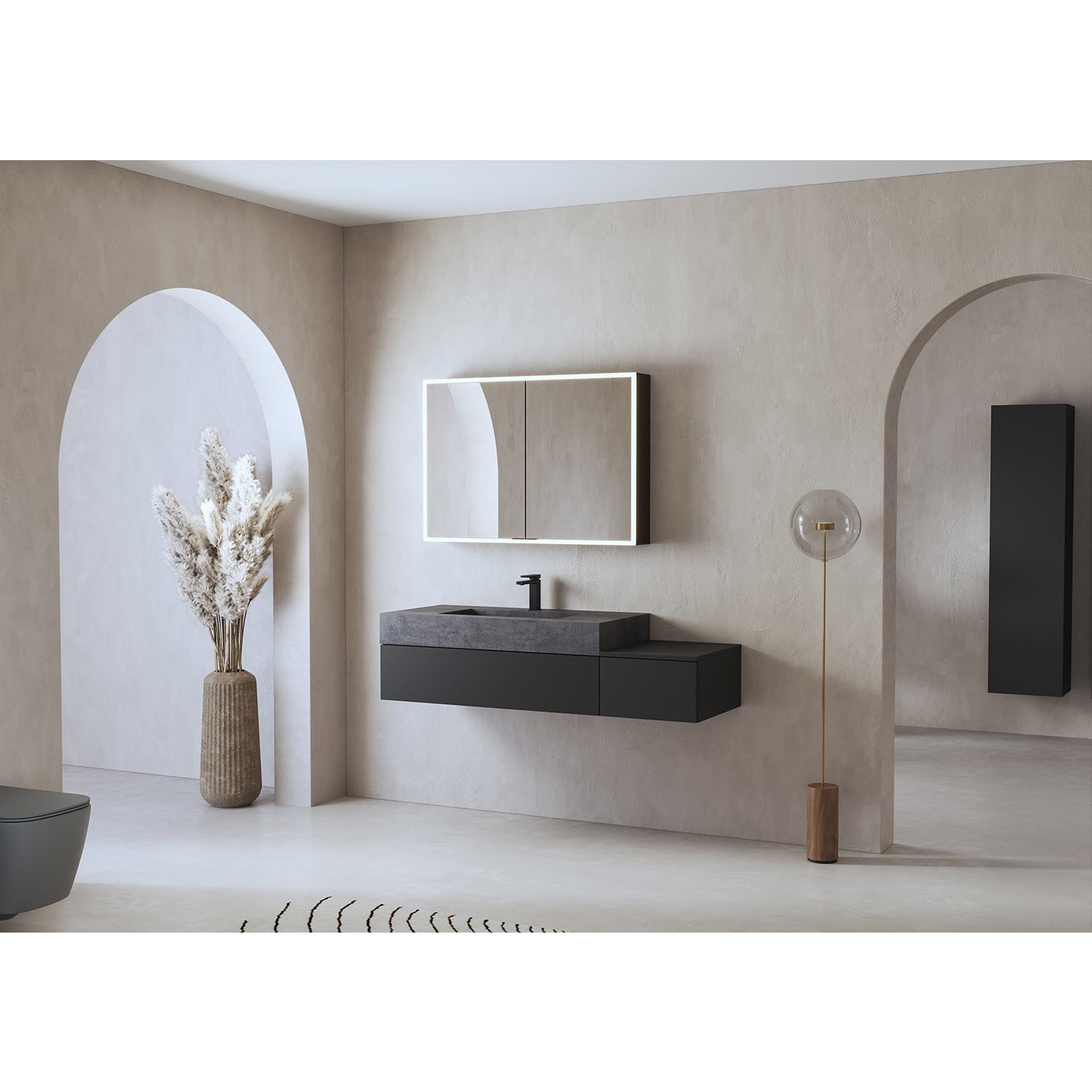 - Die Seiten von Aufputz-Spiegelschränken bestehen aus schwarzem Glas, was für eine elegante Optik sorgt.