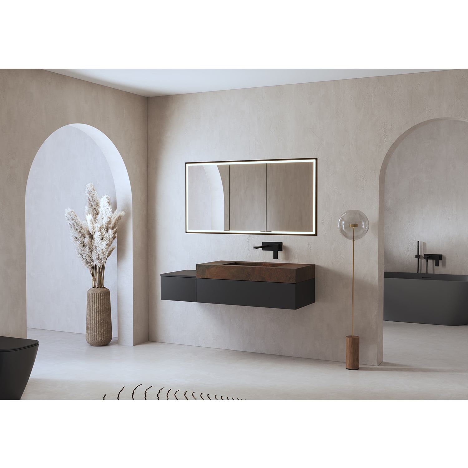 ALLUVION Pluto Spiegelschrank 130 cm, Unterputz, 3-türig