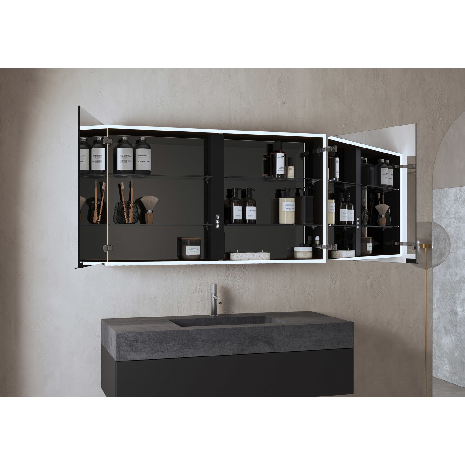 - Die Seiten von Aufputz-Spiegelschränken bestehen aus schwarzem Glas, was für eine elegante Optik sorgt.