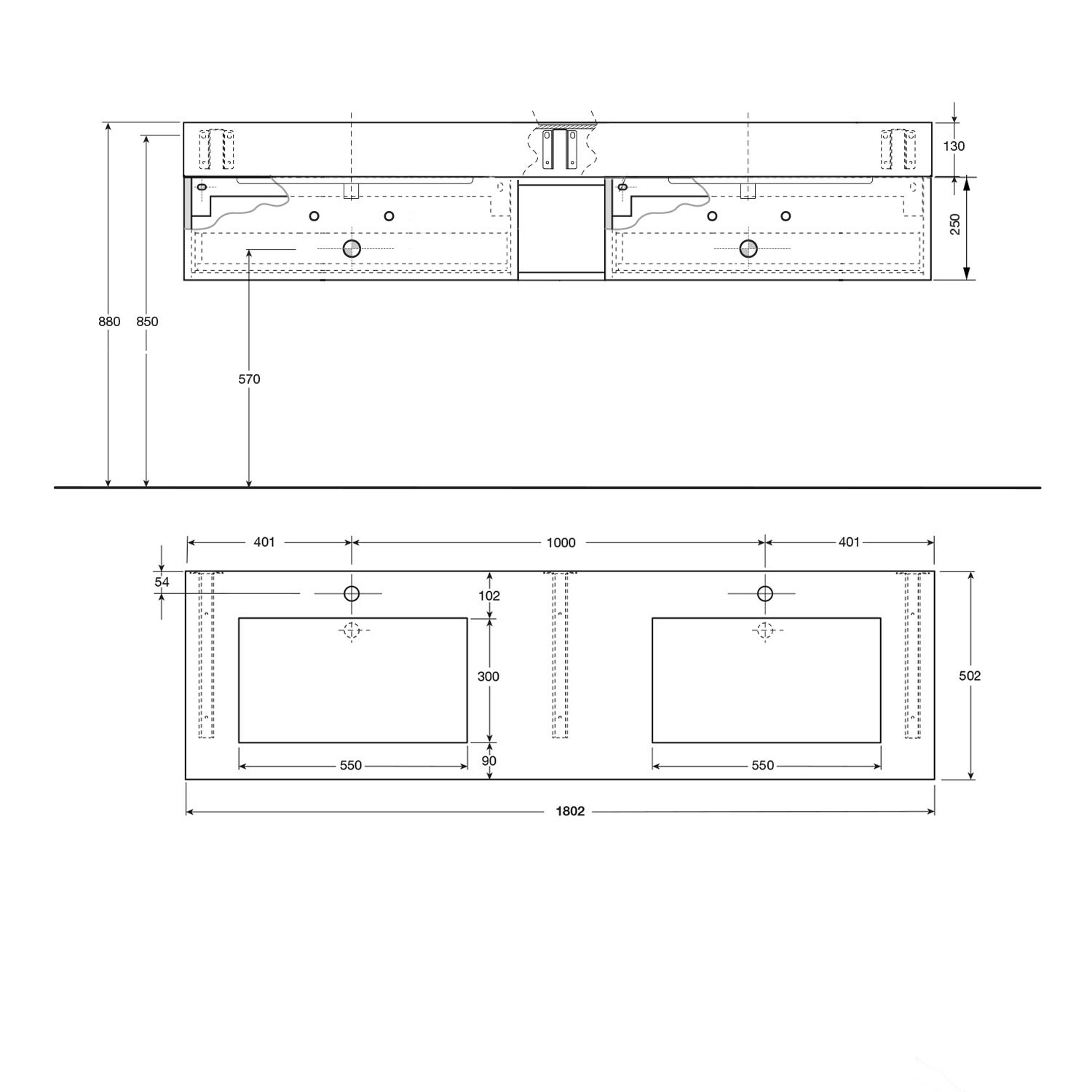 - Optimiertes Wasserabflussdesign: Der Waschtisch ist leicht abgesenkt, um ein verbessertes Abfließen des Wassers durch den durchgängigen, verdeckten Ablauf zu gewährleisten