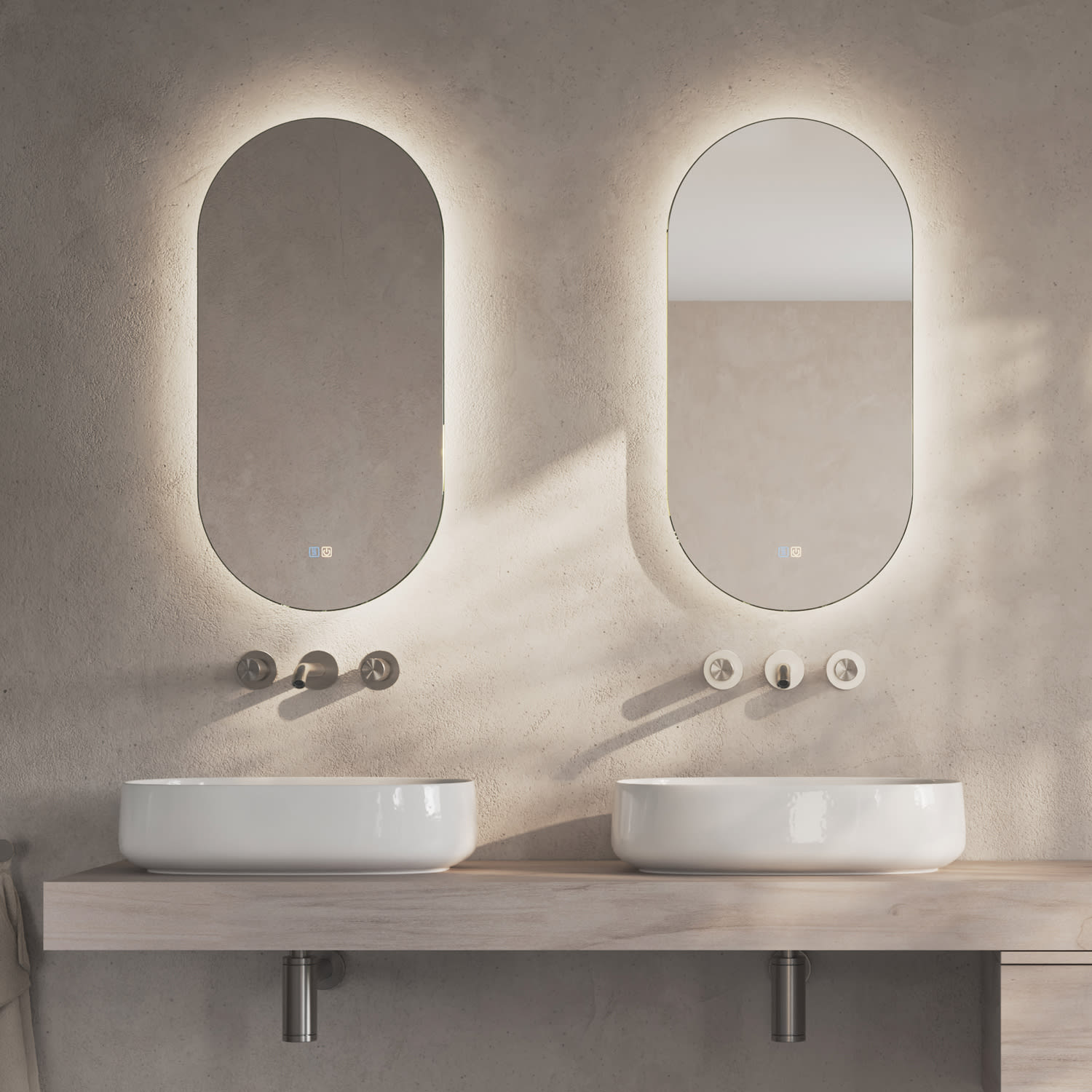 ALLUVION Aurora Lichtspiegel B: 40 x H: 80 cm, oval, mit umlaufender LED-Beleuchtung, direkt + indirekt