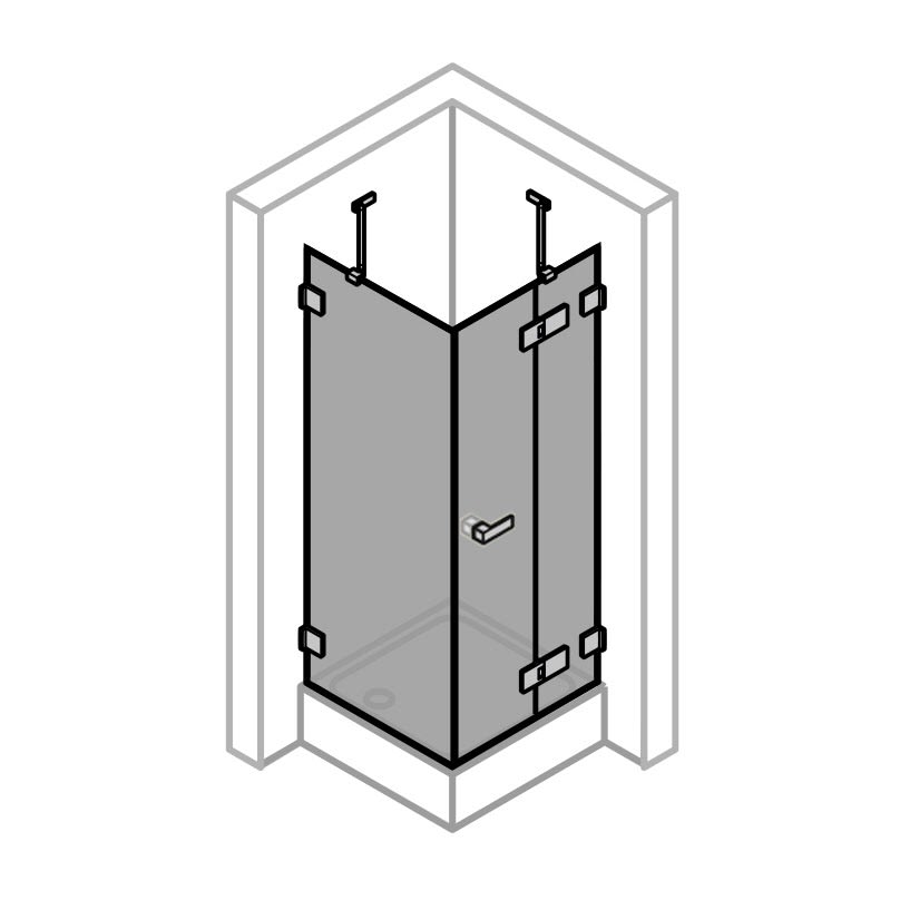 - rahmenlose Tür mit einem Glasflügel, nach innen und außen öffnend, mit einem festen Segment und rahmenloser Seitenwand