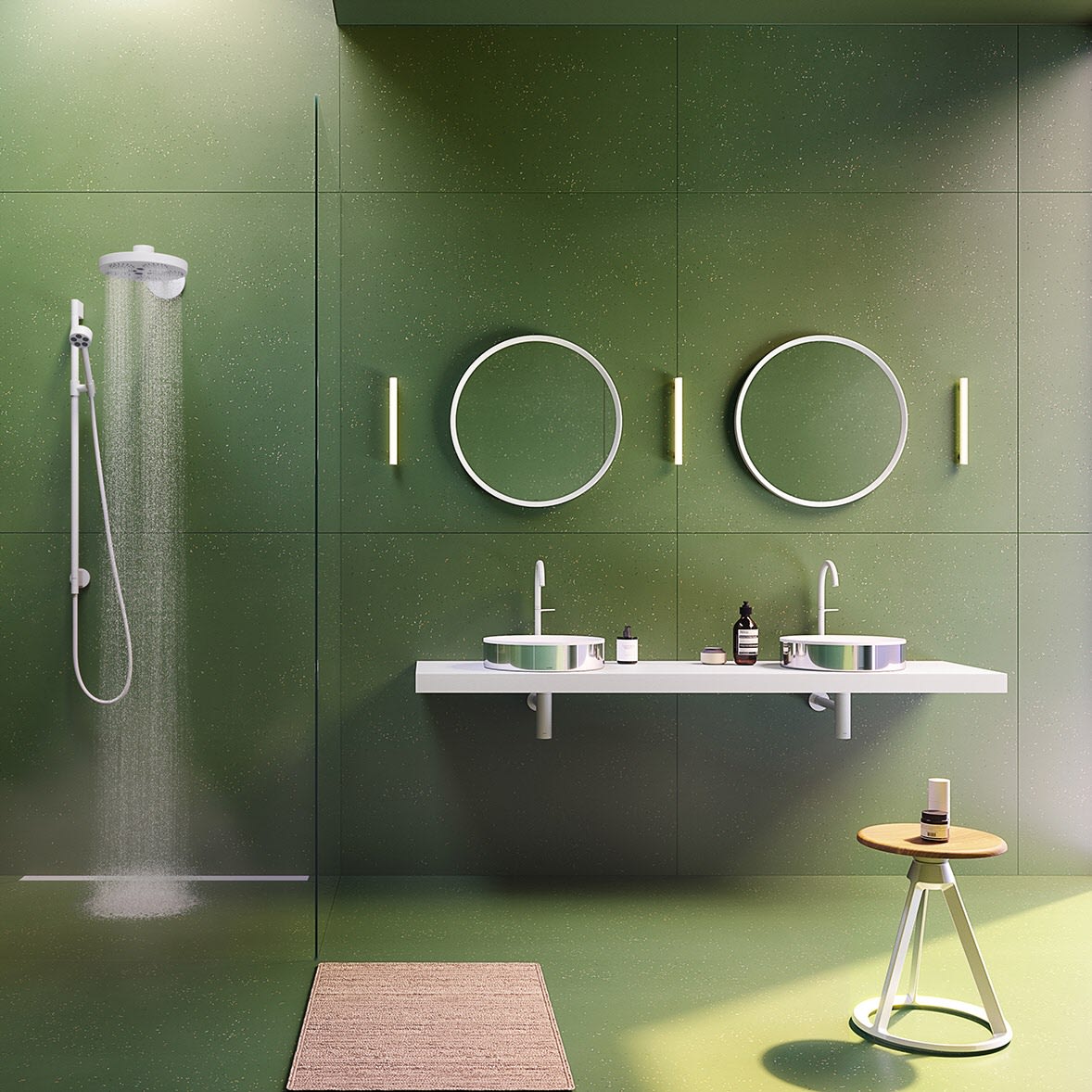 - ohne Hahnloch – für wandmontierte oder freistehende Armaturen geeignet