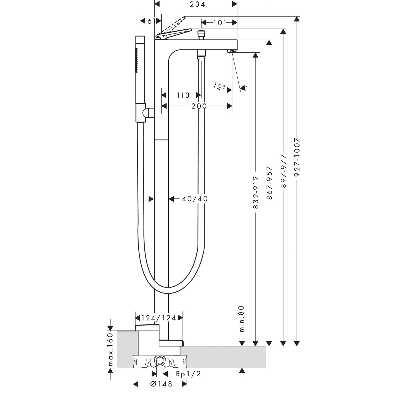 AXOR Citterio Einhebel-Wannenmischer bodenstehend mit Hebelgriff