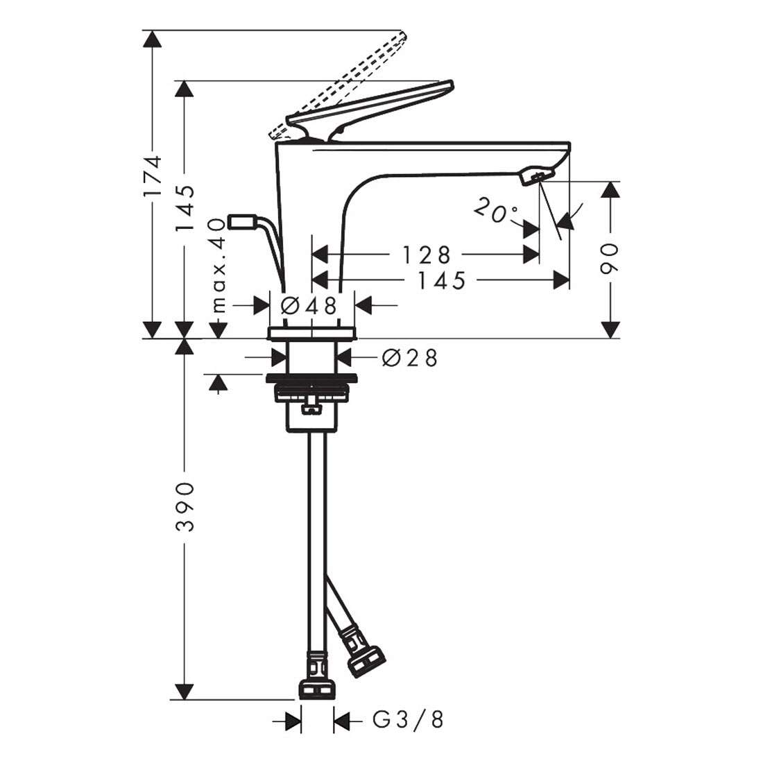 - besteht aus: Einhebel-Waschtischmischer, Ablaufgarnitur