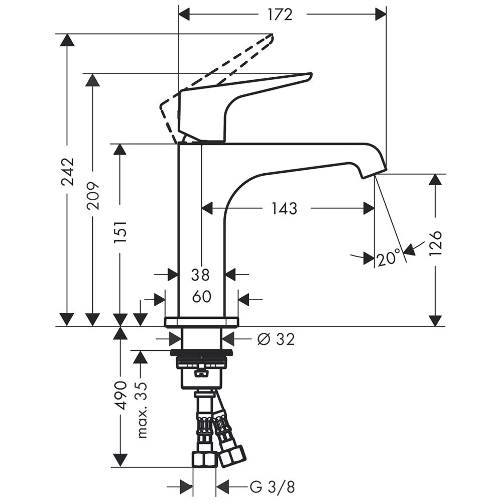 AXOR Citterio E Einhebel-Waschtischmischer 125 mit Hebelgriff und ohne Ablaufgarnitur