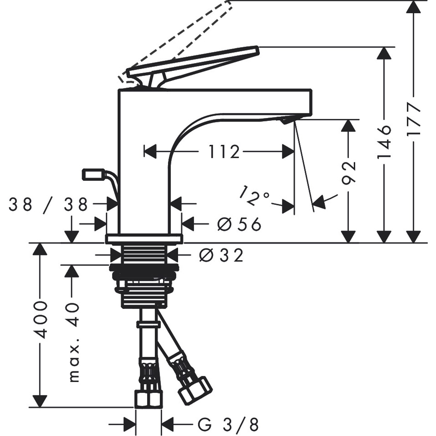 AXOR Citterio Einhebel-Waschtischmischer 90 mit Hebelgriff im Rautenschliff für Handwaschbecken, mit Zugstangen-Ablaufgarnitur