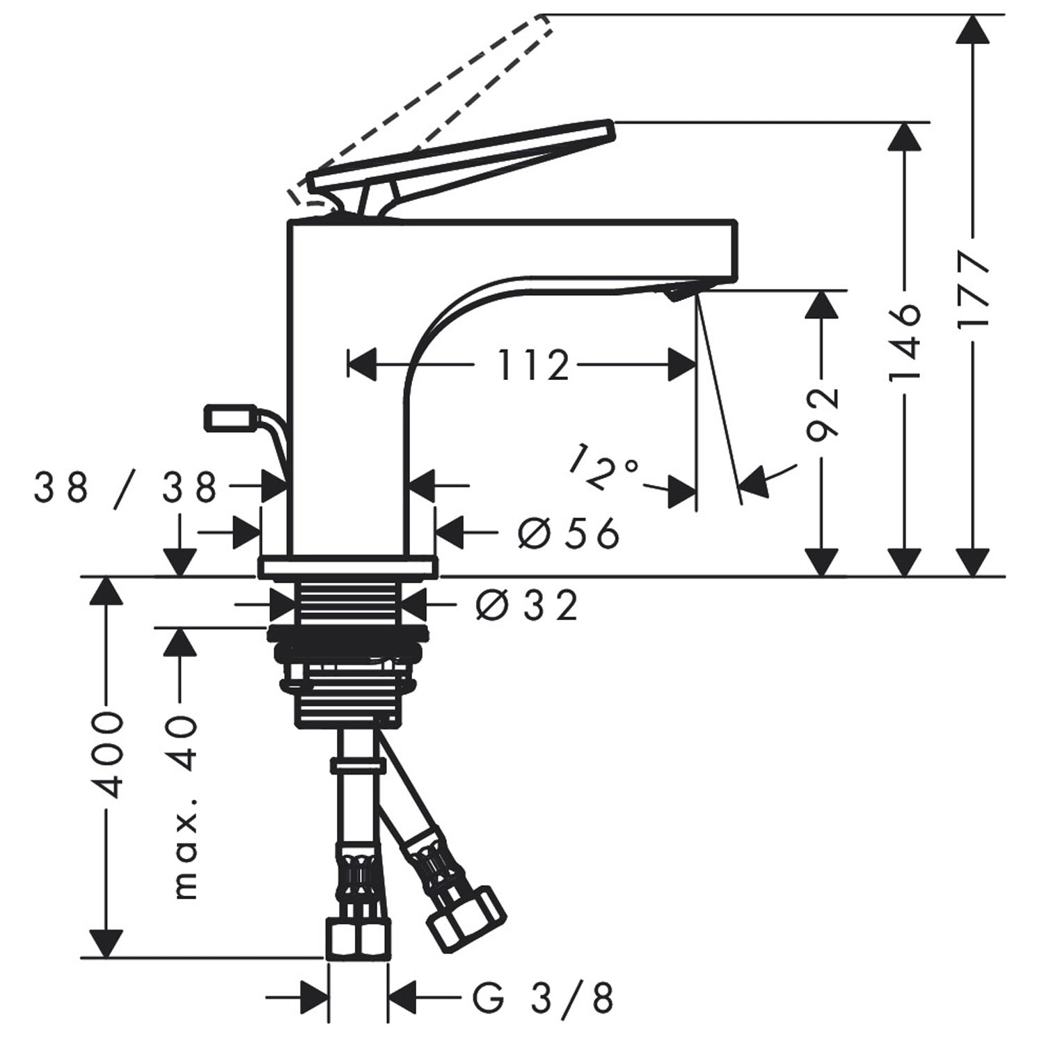 - Anschlussart: G 3/8 Anschlussschläuche