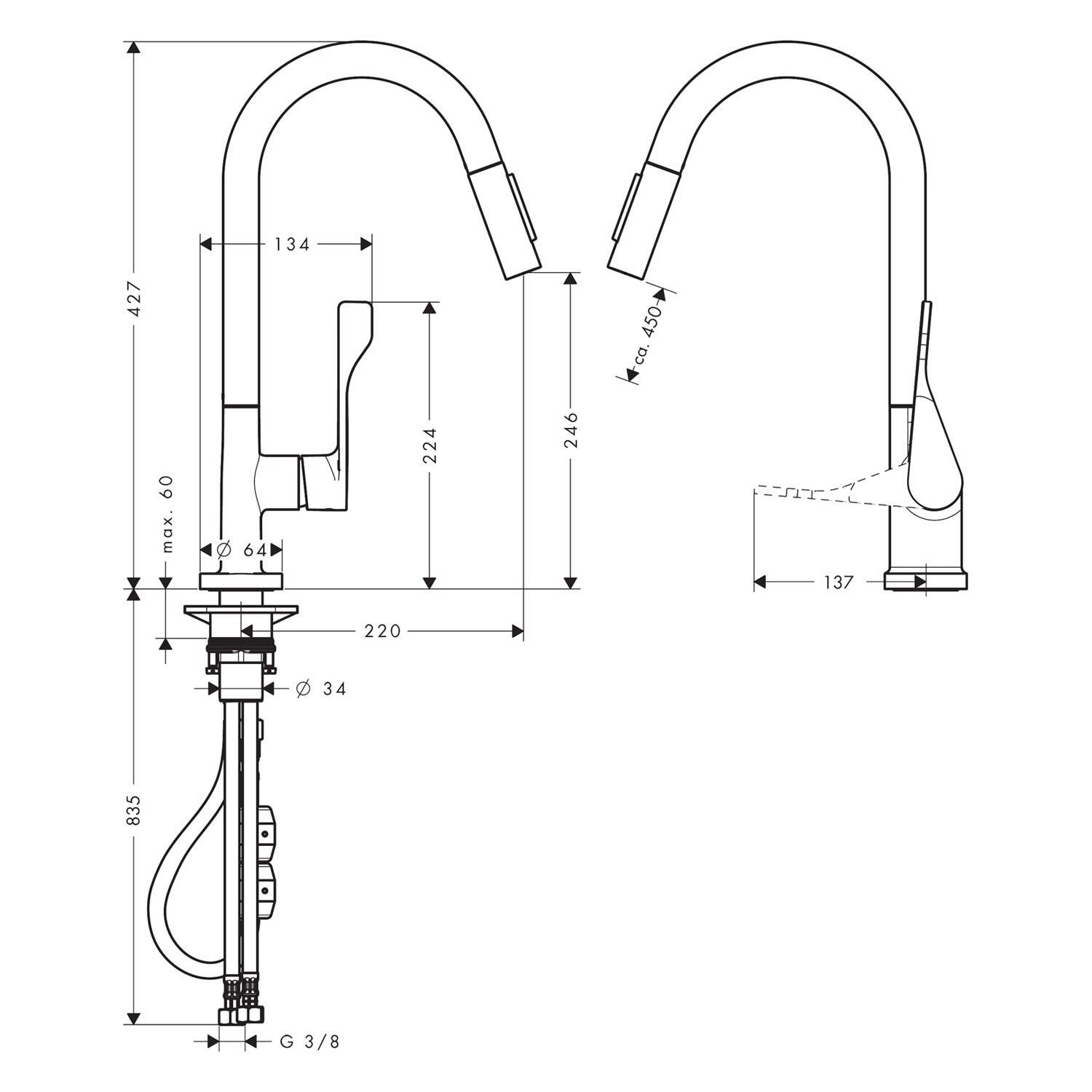 AXOR Citterio Einhebel-Küchenarmatur 250 mit Ausziehbrause Eco
