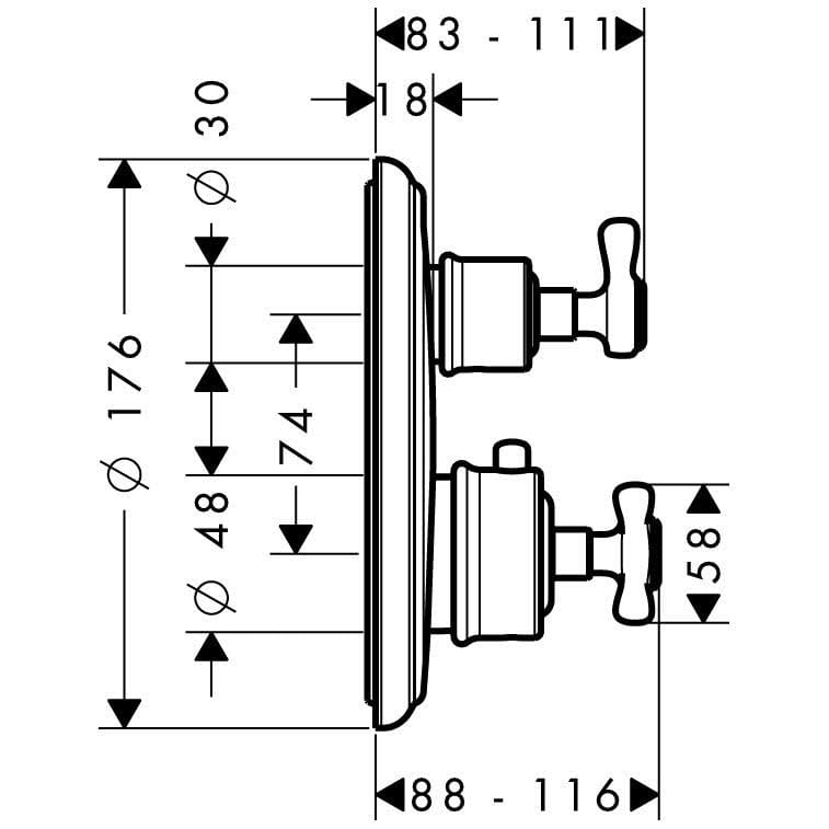 AXOR Montreux Thermostatbatterie UP mit Keramik Absperrventil