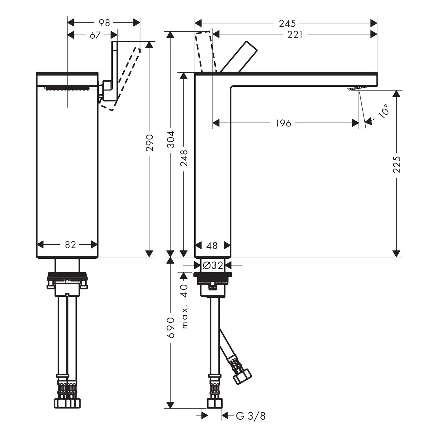 - Anschlussart: G3/8 Anschlussschläuche
