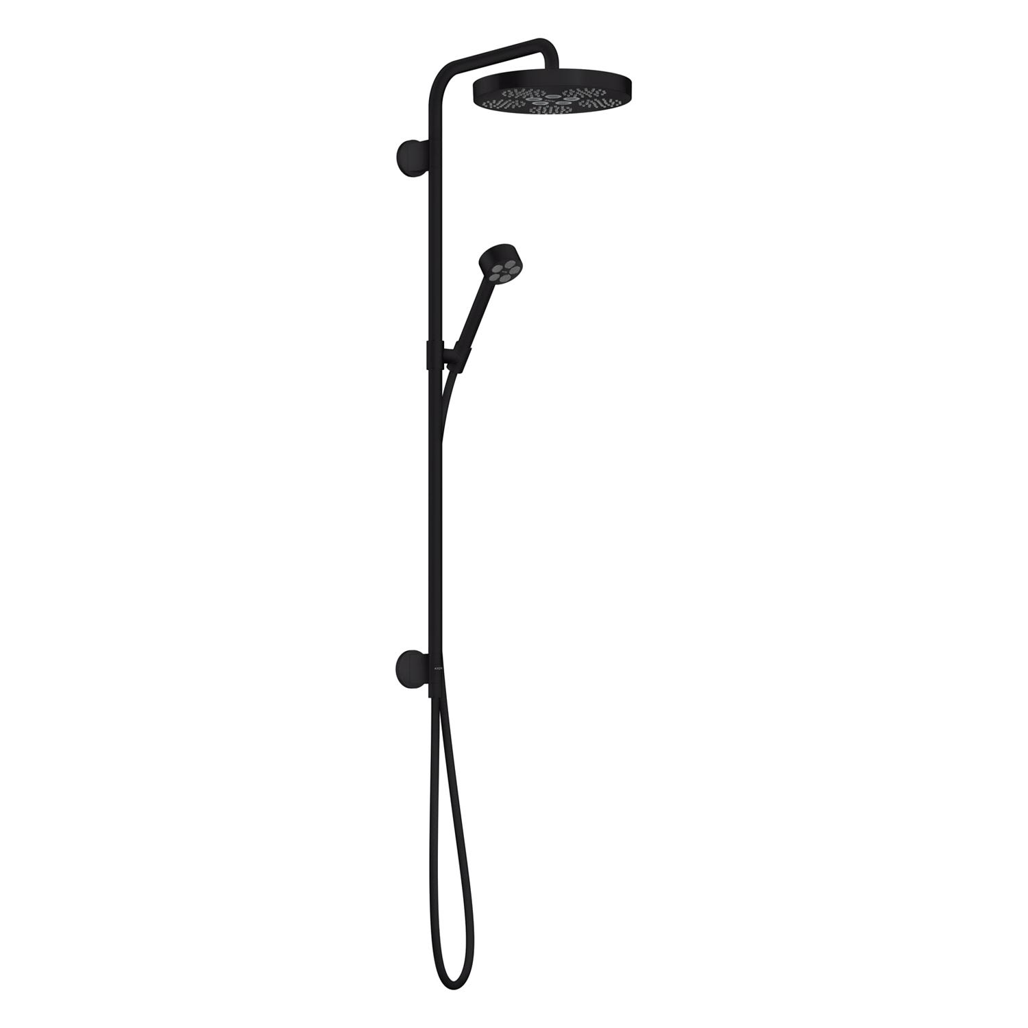 Set besteht aus: Kopfbrause, Handbrause, Wandanschluss, Brauseschlauch, Handbrausehalterung und Brausestange