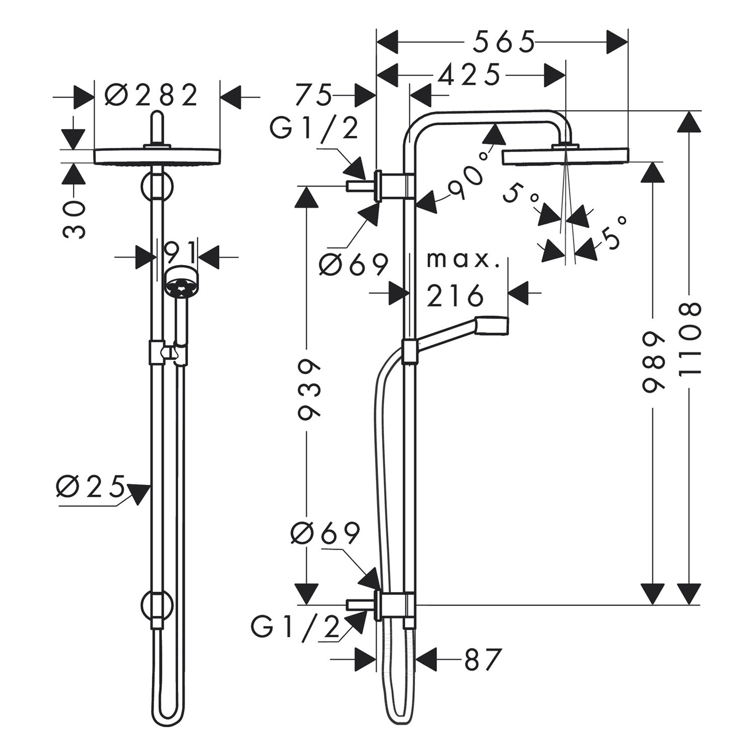 - Brausekopfgröße Kopfbrause: Ø 28 cm