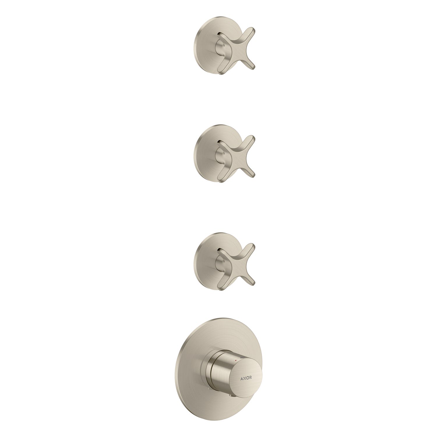 AXOR One Thermostatmodul Unterputz für 3 Verbraucher mit Kreuzgriffen, Rosetten rund