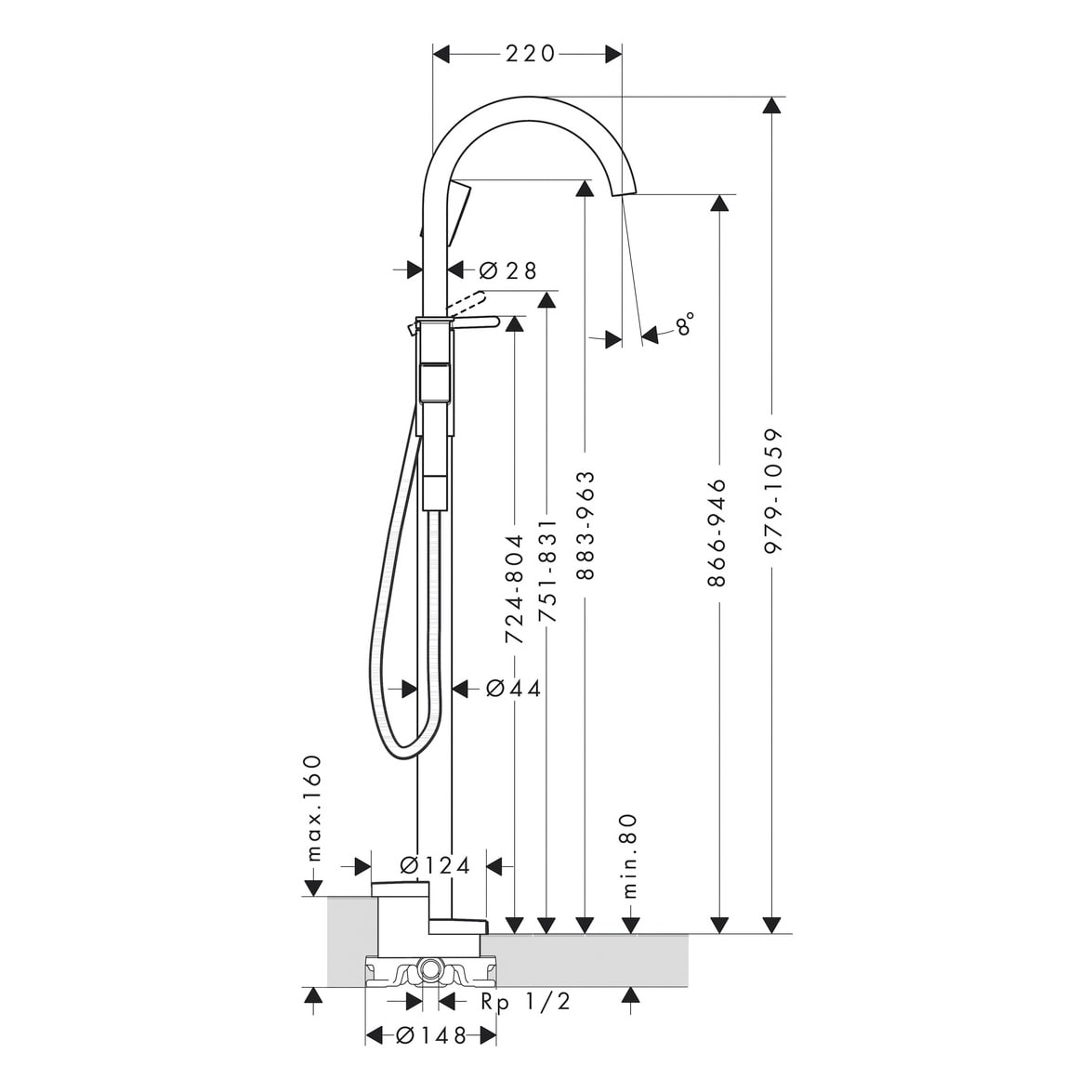 Der zur Installation erforderliche Grundkörper für bodenstehende Armaturen (Art. 10452180) ist nicht im Lieferumfang enthalten - bitte separat bestellen!
