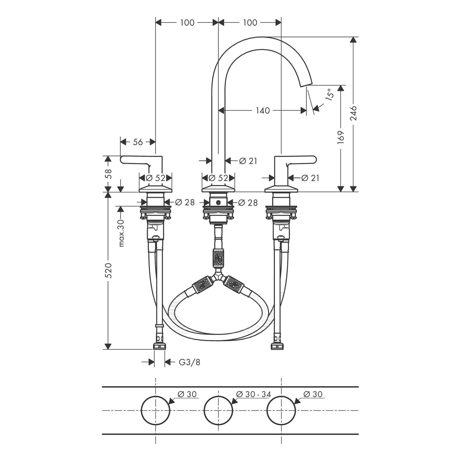 - Anschlussart: G 3/8 Anschlussschläuche