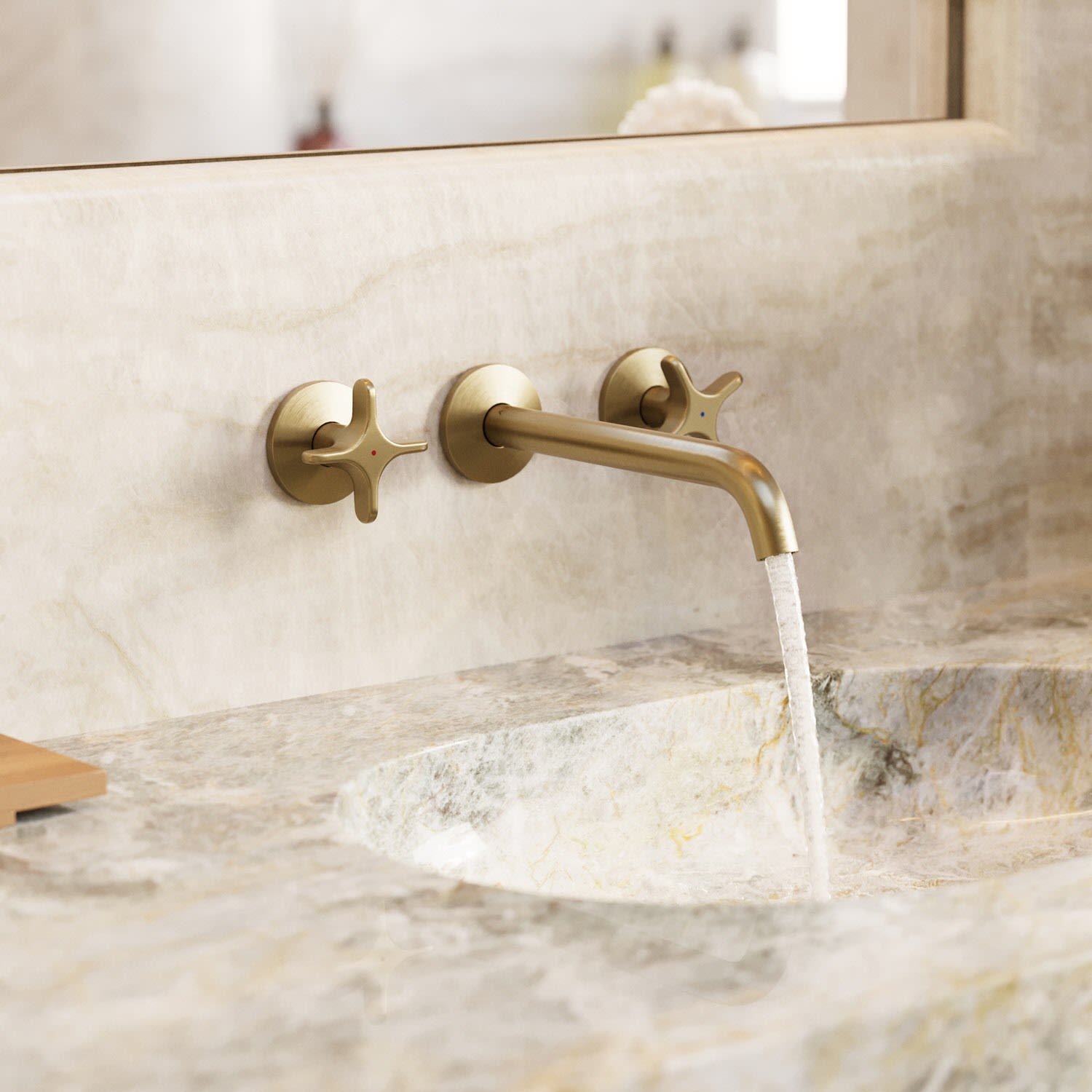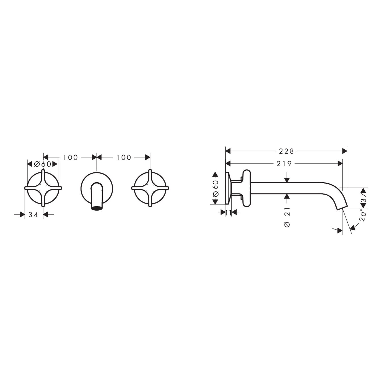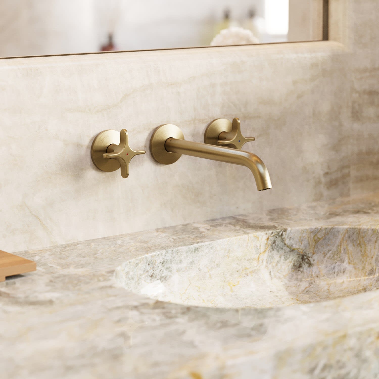 AXOR One 3-Loch Waschtischarmatur UP für Wandmontage mit Kreuzgriffen und Auslauf 22 cm